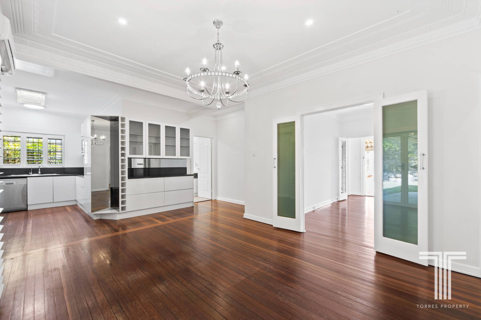- Separate fourth bedroom, office or studio with air conditioning, floating timber floors and feature chandeliers