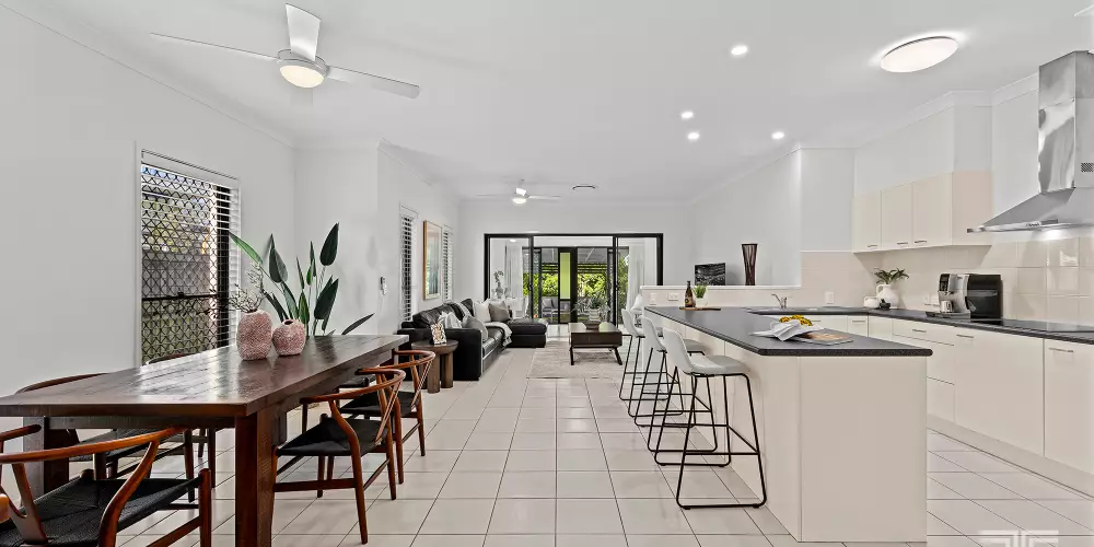 - Spacious open plan, tiled and air conditioned living and dining area leading to outdoor living spaces