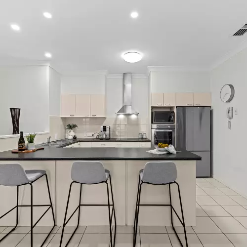 - Well appointed kitchen with ample bench and storage space, complete with stainless appliances, dishwasher and breakfast bar