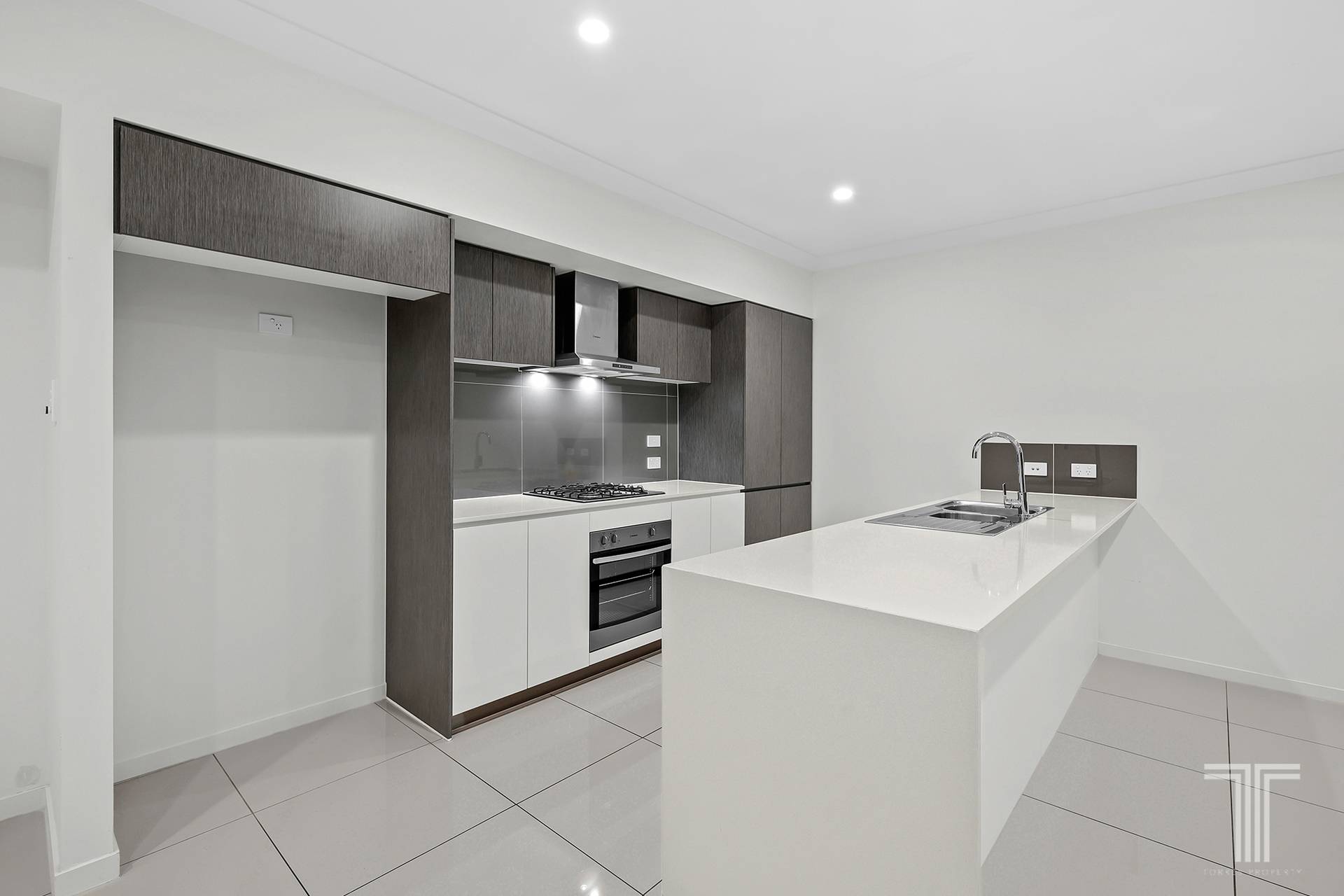 A gourmet kitchen sits centrally in the living zone, catering to indoor meals and alfresco dinners with ample prep space and stainless steel appliances.