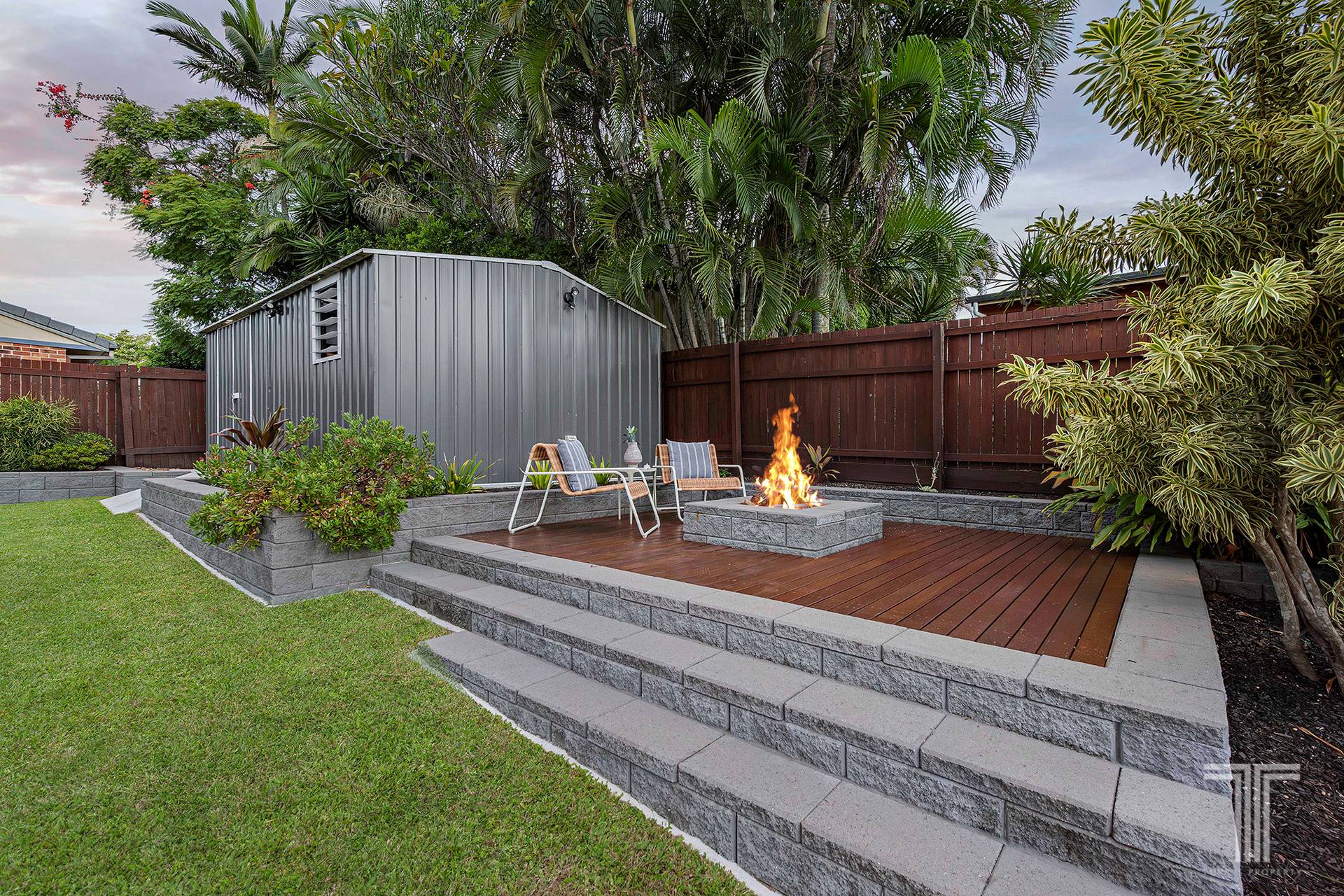 - Built-in fire pit