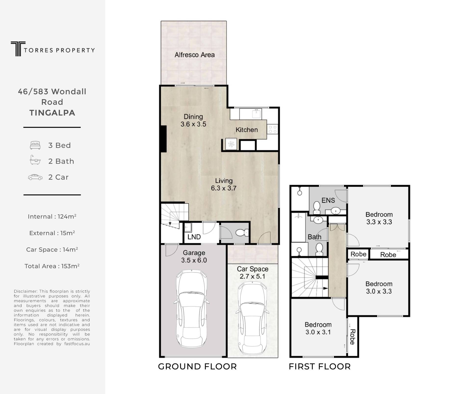 Disclaimer: Whilst every care is taken in the preparation of the information contained in this marketing, Torres Property will not be held liable for any errors in typing or information. All interested parties should rely upon their own enquiries in order to determine whether or not this information is in fact accurate.