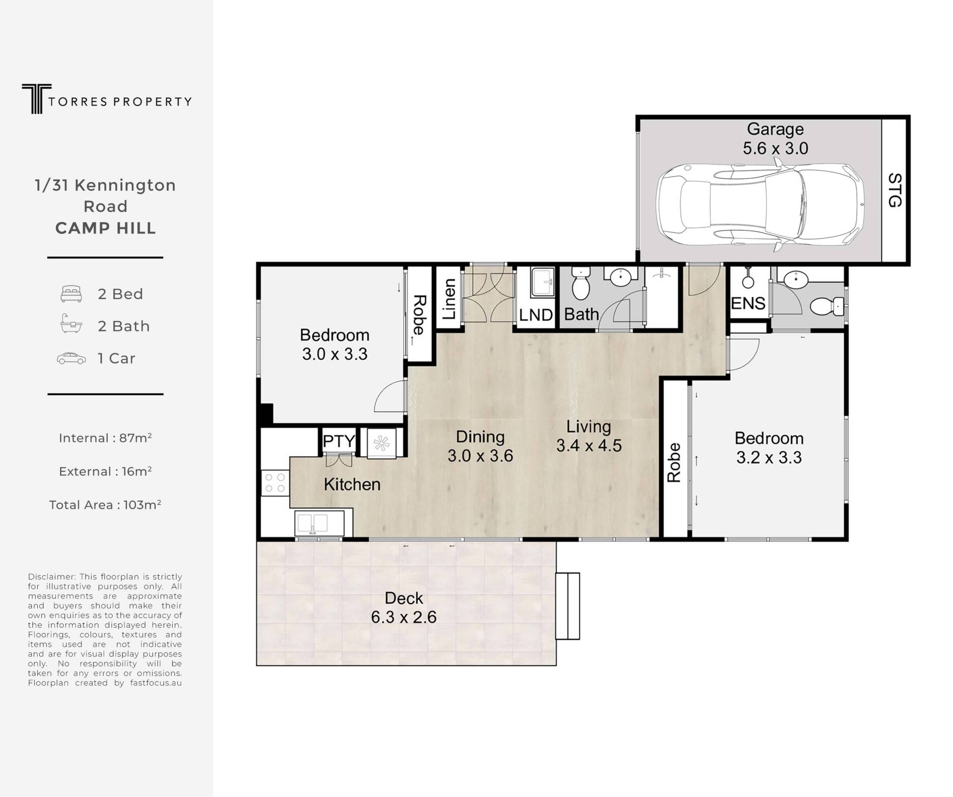 Disclaimer: Whilst every care is taken in the preparation of the information contained in this marketing, Torres Property will not be held liable for any errors in typing or information. All interested parties should rely upon their own enquiries in order to determine whether or not this information is in fact accurate.