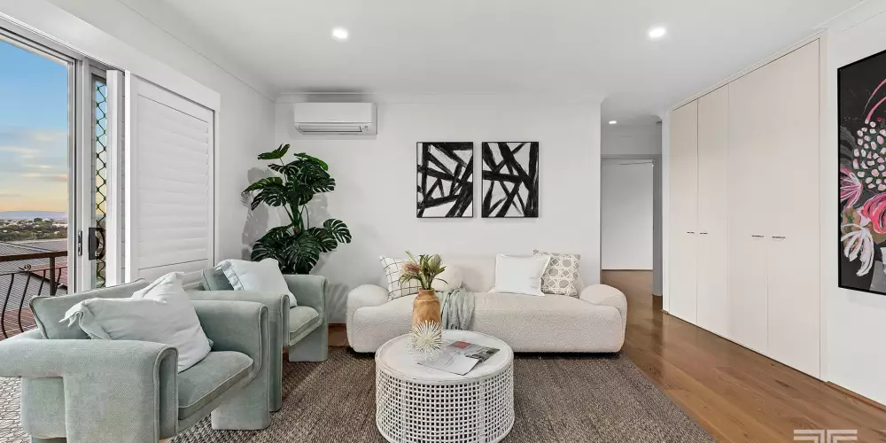 Enriched with brand-new appointments, beautiful hardwood floors and plantation shutters, the light-filled interiors flow across the air-conditioned living area and practical kitchen, fully equipped with functional appliances, including a Samsung fridge and Bosch washing machine.
