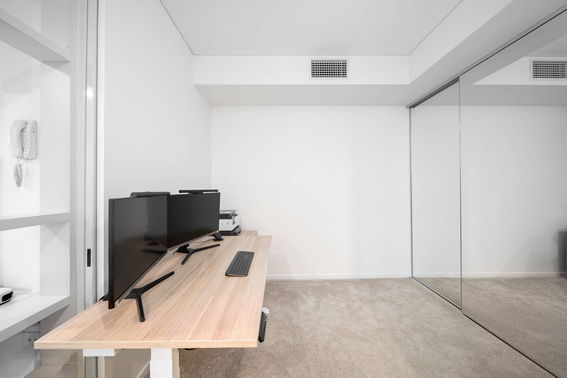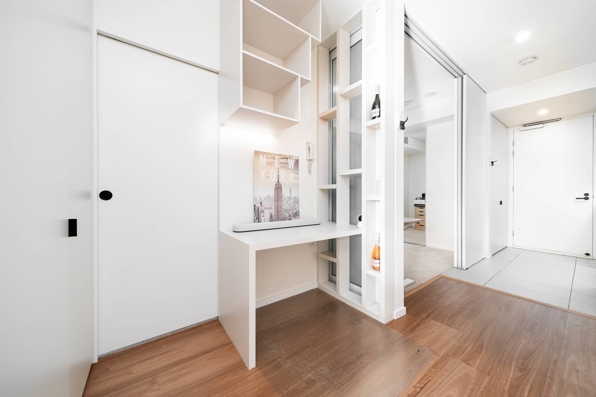 The executive layout continues with a study nook, two bedrooms, one two-way bathroom, a European laundry, and a secure car space. Built-in robes feature in both bedrooms, and the master suite boasts an ensuite and balcony access.