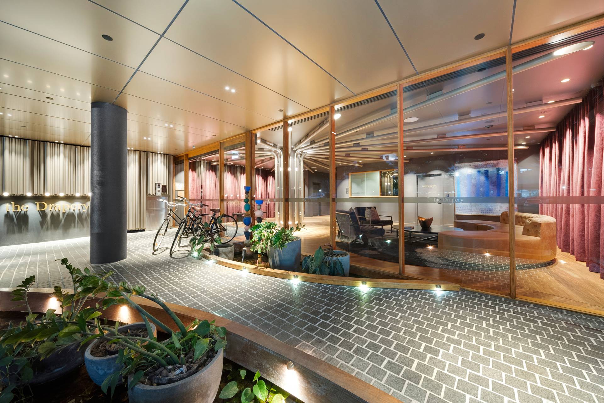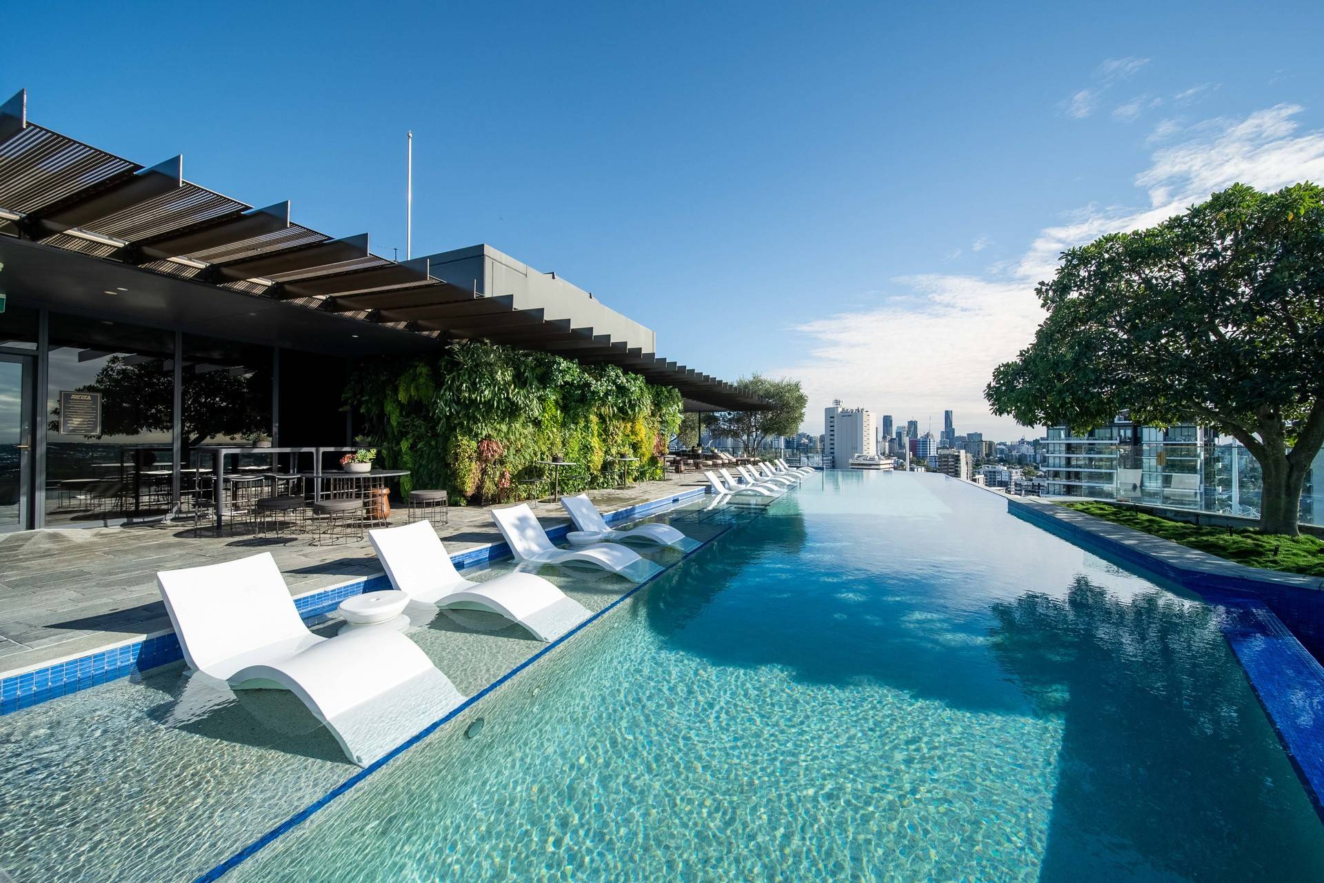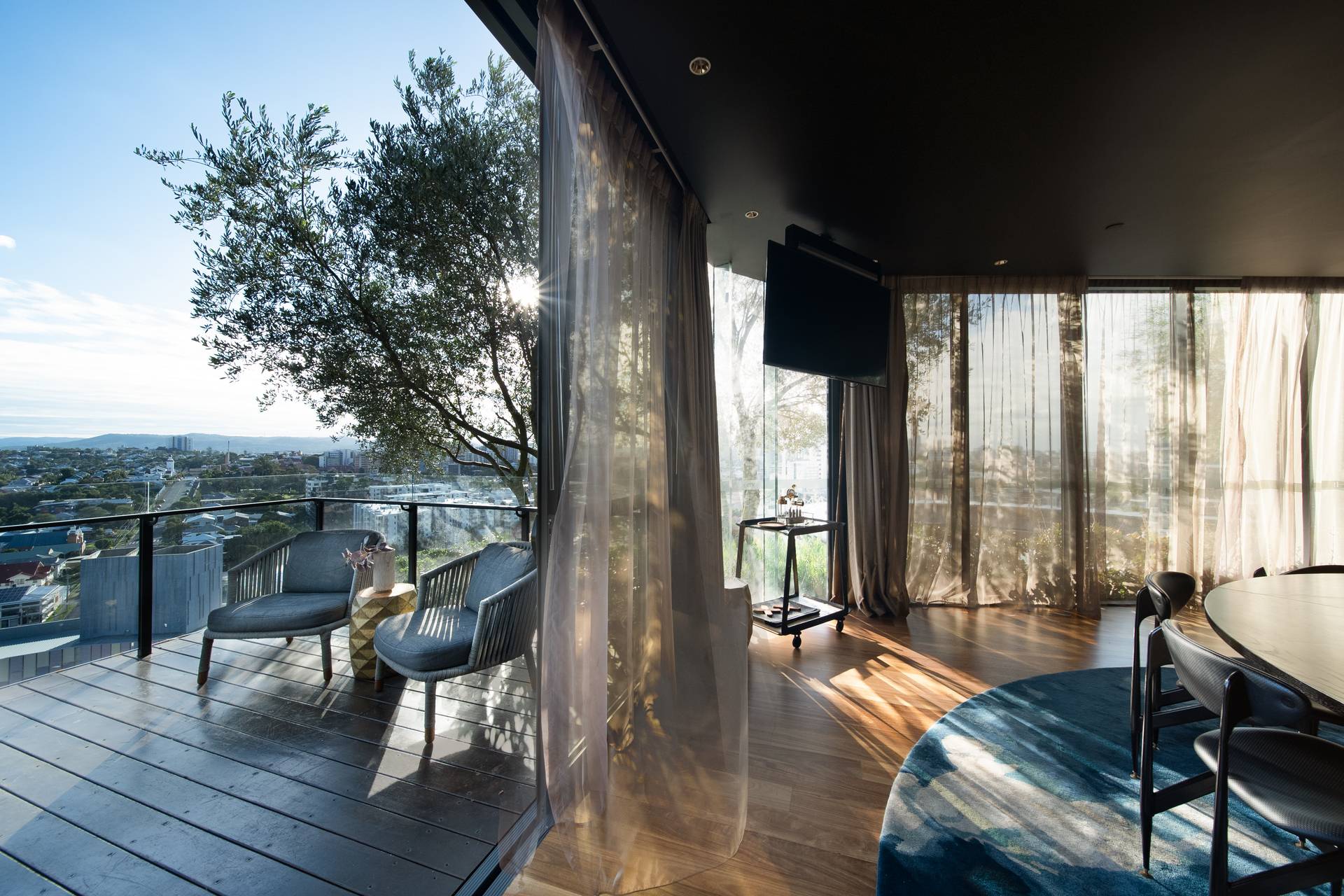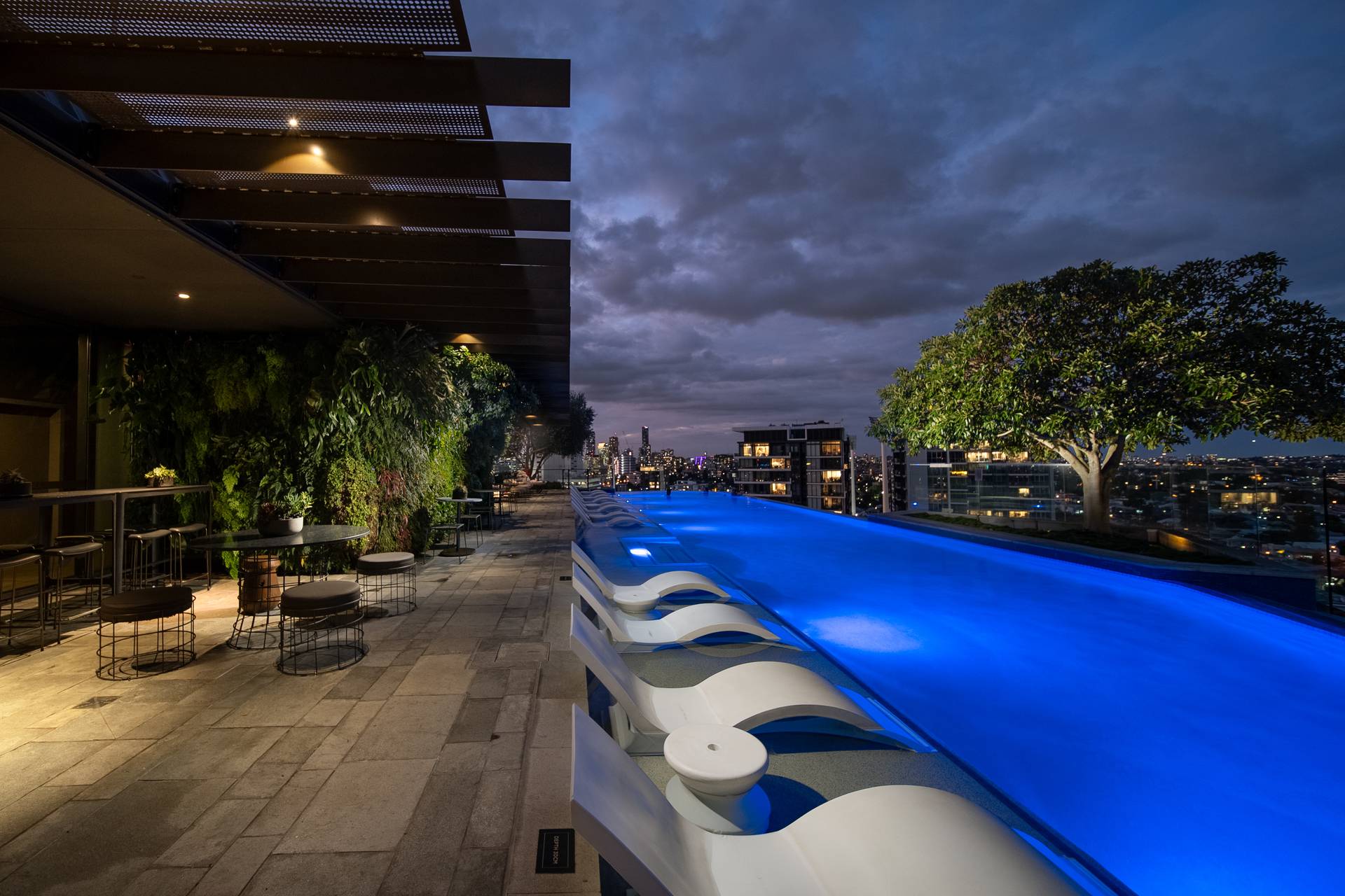 The luxury lifestyle extends beyond the apartment to The Drapery's sensational selection of resort-style amenities. The kitchen/dining room, theatre and gym cater to meals, movie nights and exercise, and the mesmerising rooftop terrace hosts BBQ facilities, a yoga lawn, and an infinity pool with day beds and enchanting city outlooks.