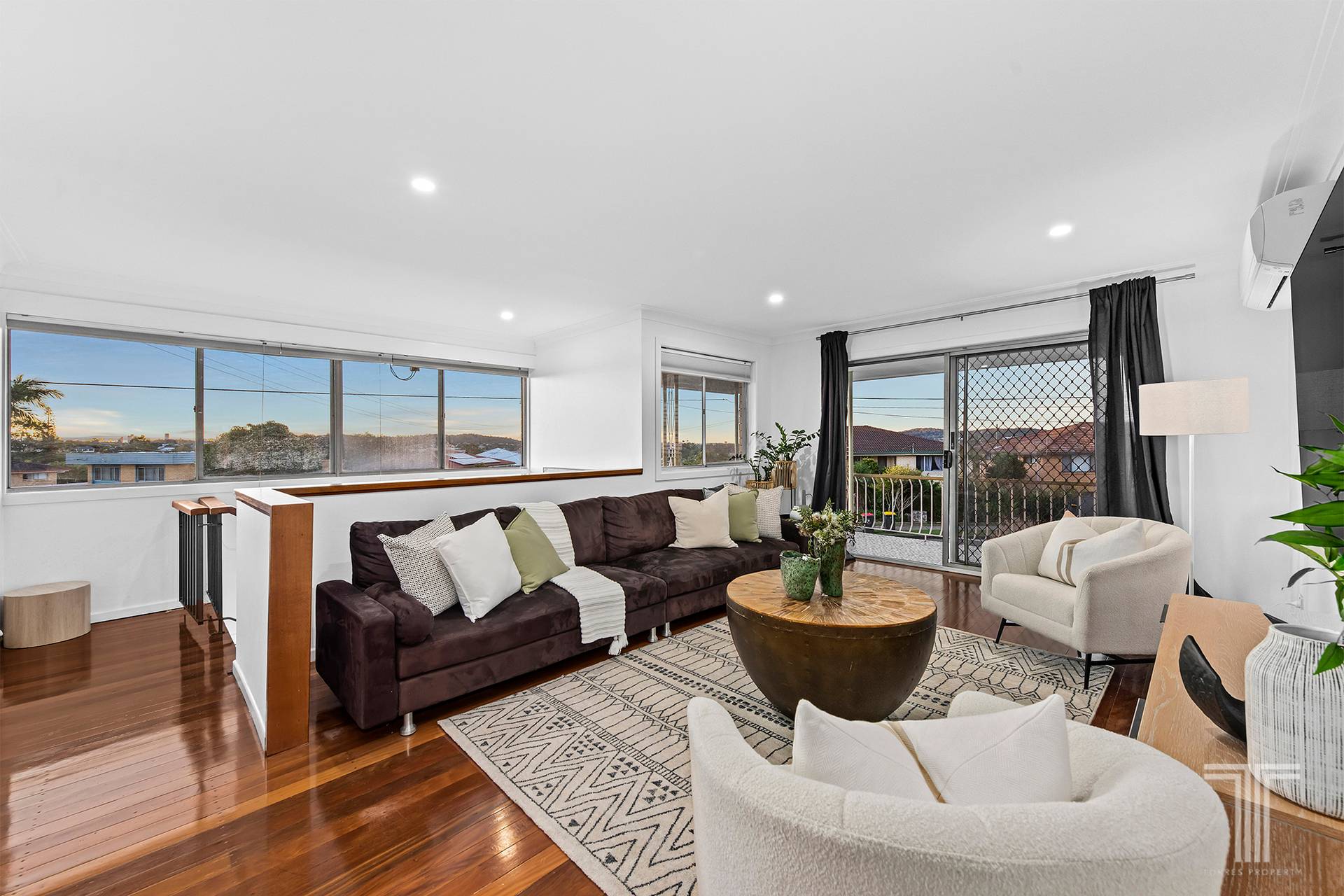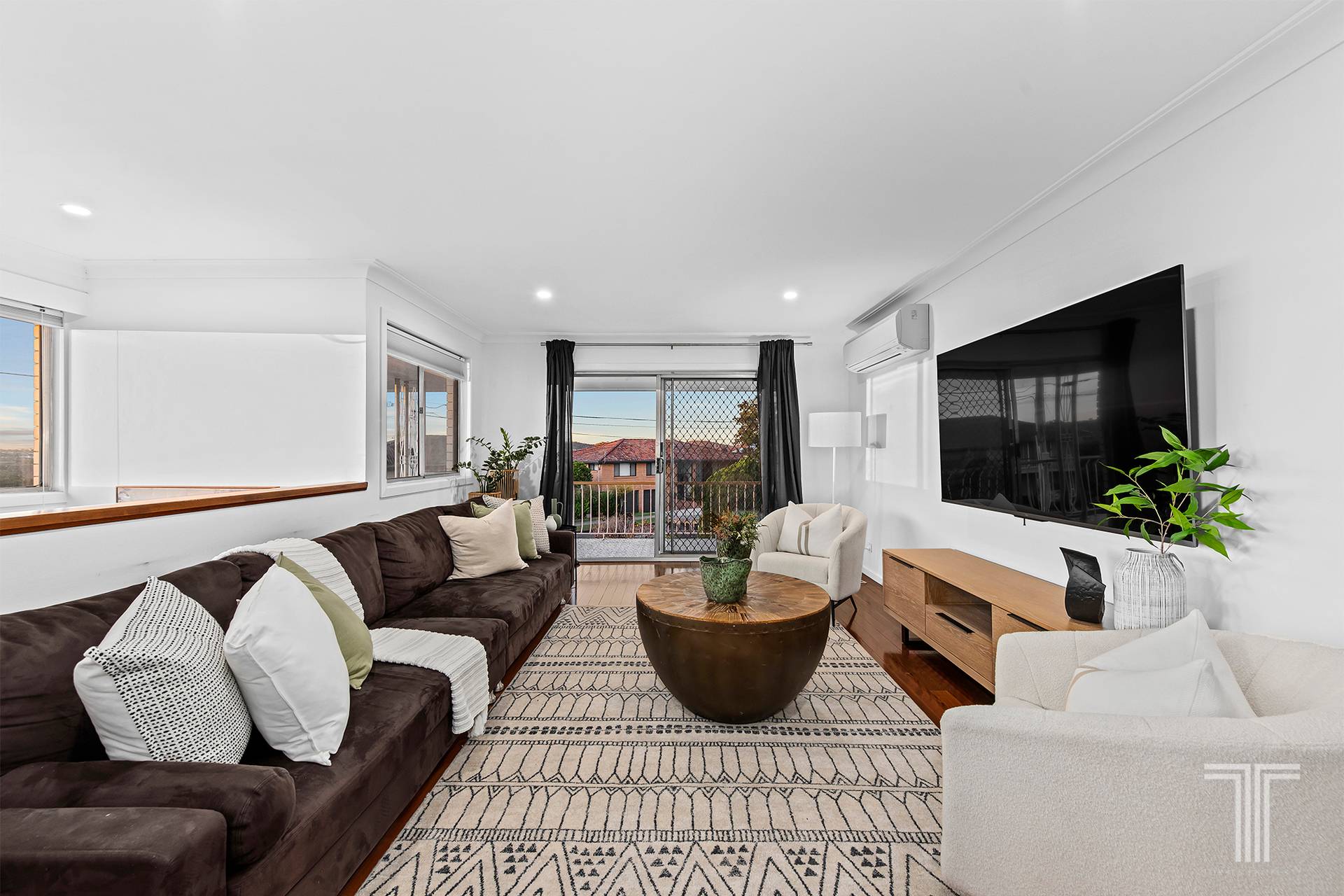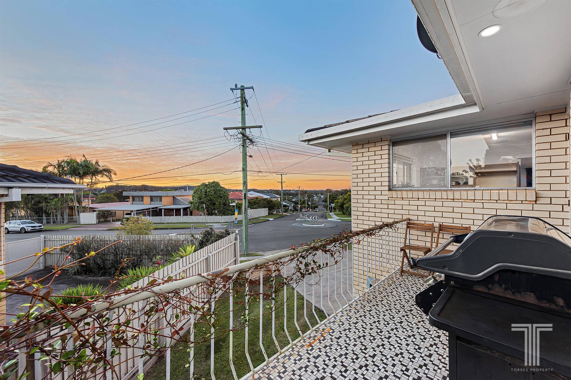 Upstairs features four spacious bedrooms, a large living area, and a front balcony that captures sweeping elevated suburban views. Downstairs, the versatile rumpus area and second bathroom offer the perfect setup for dual living, a home office, or guest quarters.