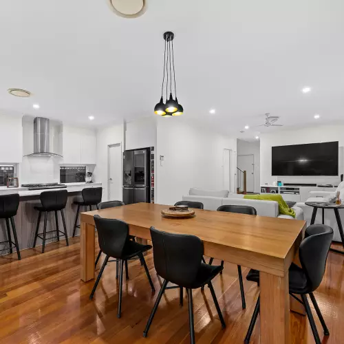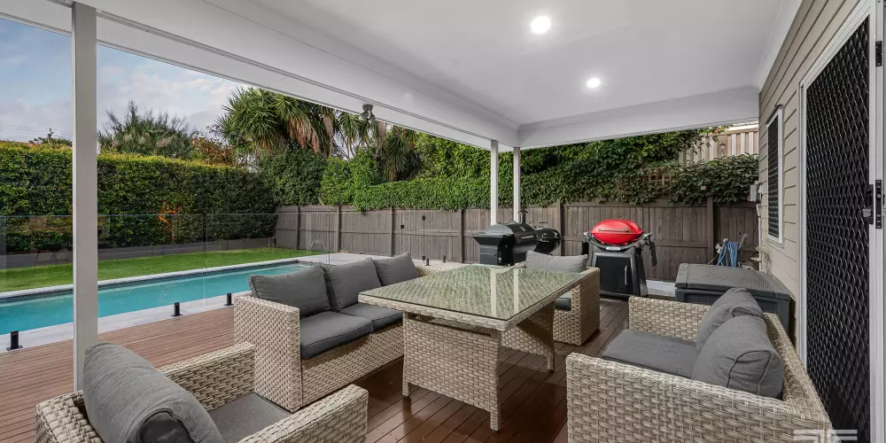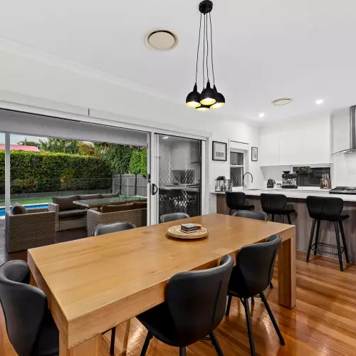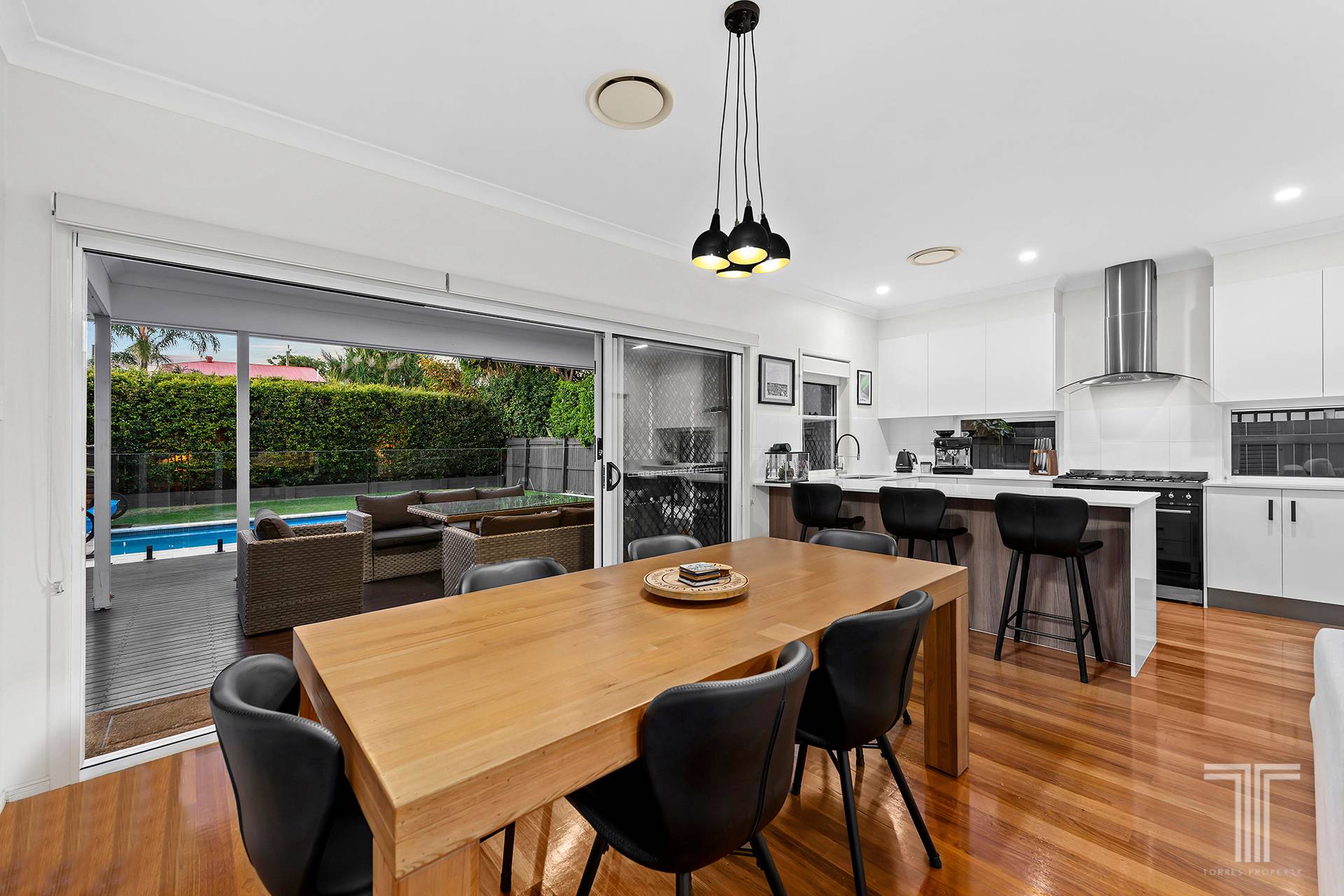Only 10 years old and designed to cater to modern families, the house offers the perfect blend of indoor and outdoor space and a northern rear aspect harnessing sunlight and bay breezes. Plantation shutters and air conditioning allow this light and airflow to circulate inside, and the mix of timber, tiled, and carpeted floors merges style and comfort.