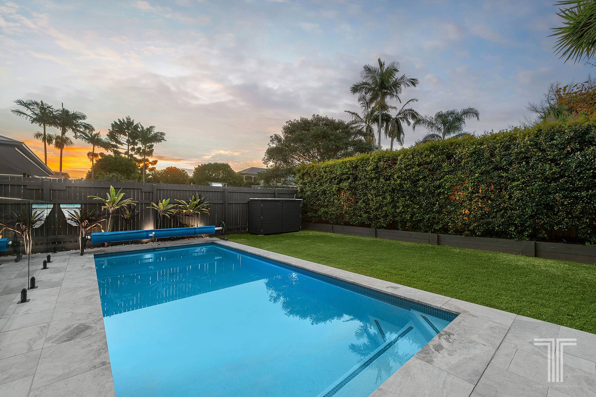 Your sightline is drawn outdoors, where a brand-new deck, heated swimming pool and private yard form an alfresco oasis enveloped by landscaped gardens. Fully fenced, this breezy hideaway caters to year-round enjoyment and allows kids to run and swim as parents watch on indoors.