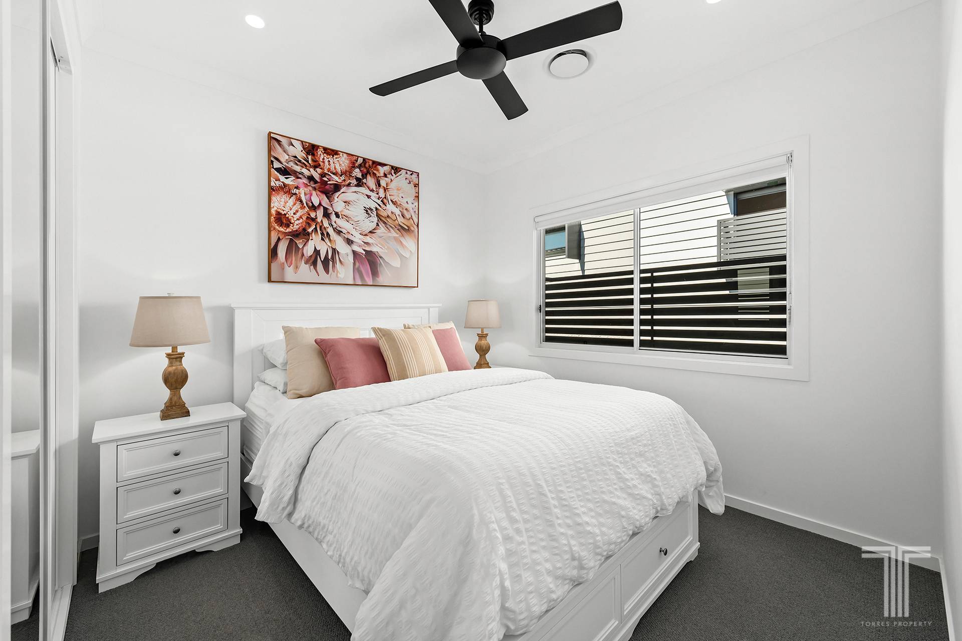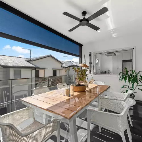 Step outside to the tiled outdoor balcony, complete with a ceiling fan, adjustable sun blind, and insect display screens on the sliding doors – a perfect setting for alfresco dining or unwinding in privacy.