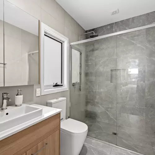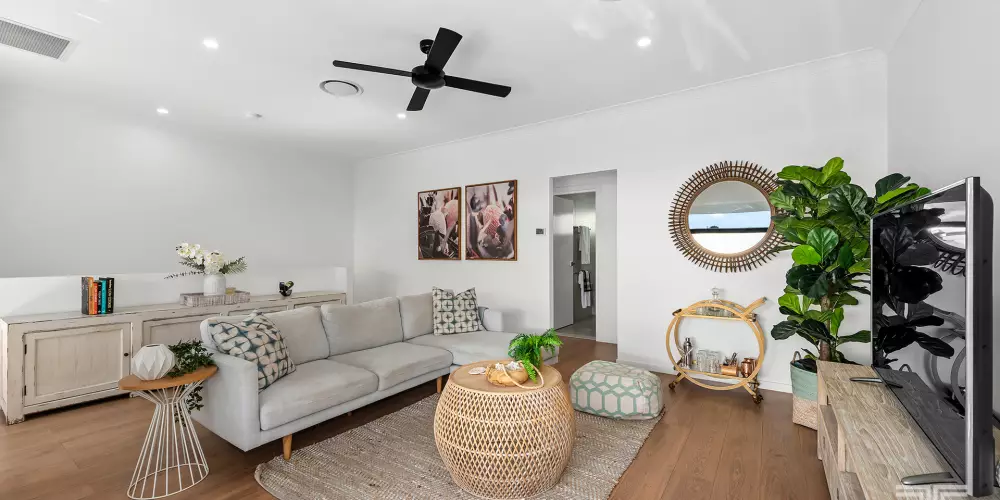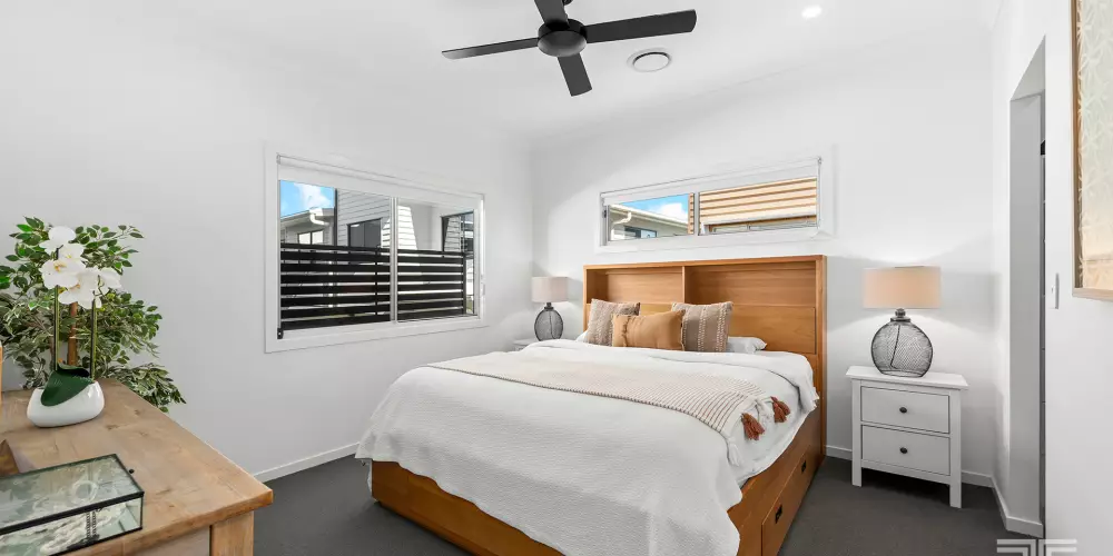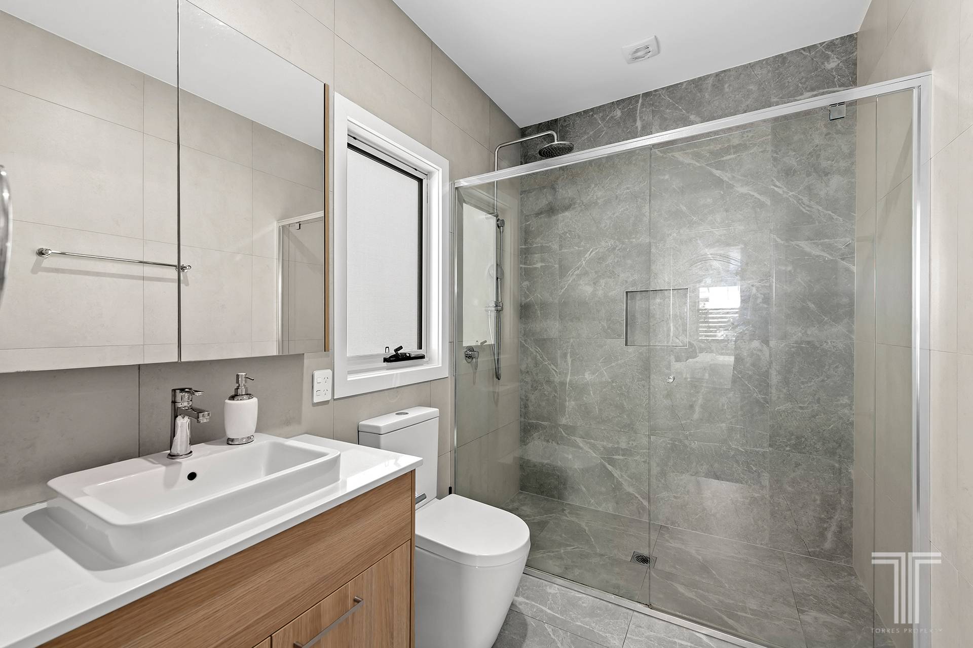 - Mirrored storage vanity cabinets, dual towel rails, and extractor fans in all bathrooms