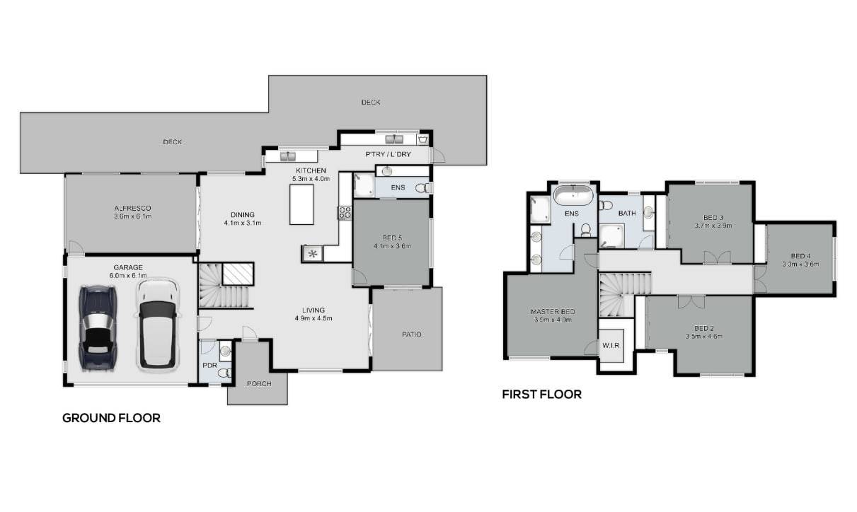 Also on the lower level, a spacious fifth bedroom with its own ensuite offers an ideal retreat for grandparents, guests, or older children. Upstairs, the family will enjoy four generously sized bedrooms, including a luxurious master suite complete with a walk-in robe and a beautifully finished ensuite featuring dual vanities, a large shower, and a deep bathtub. The additional bedrooms are fitted with built-in robes and are serviced by a stylish main bathroom.