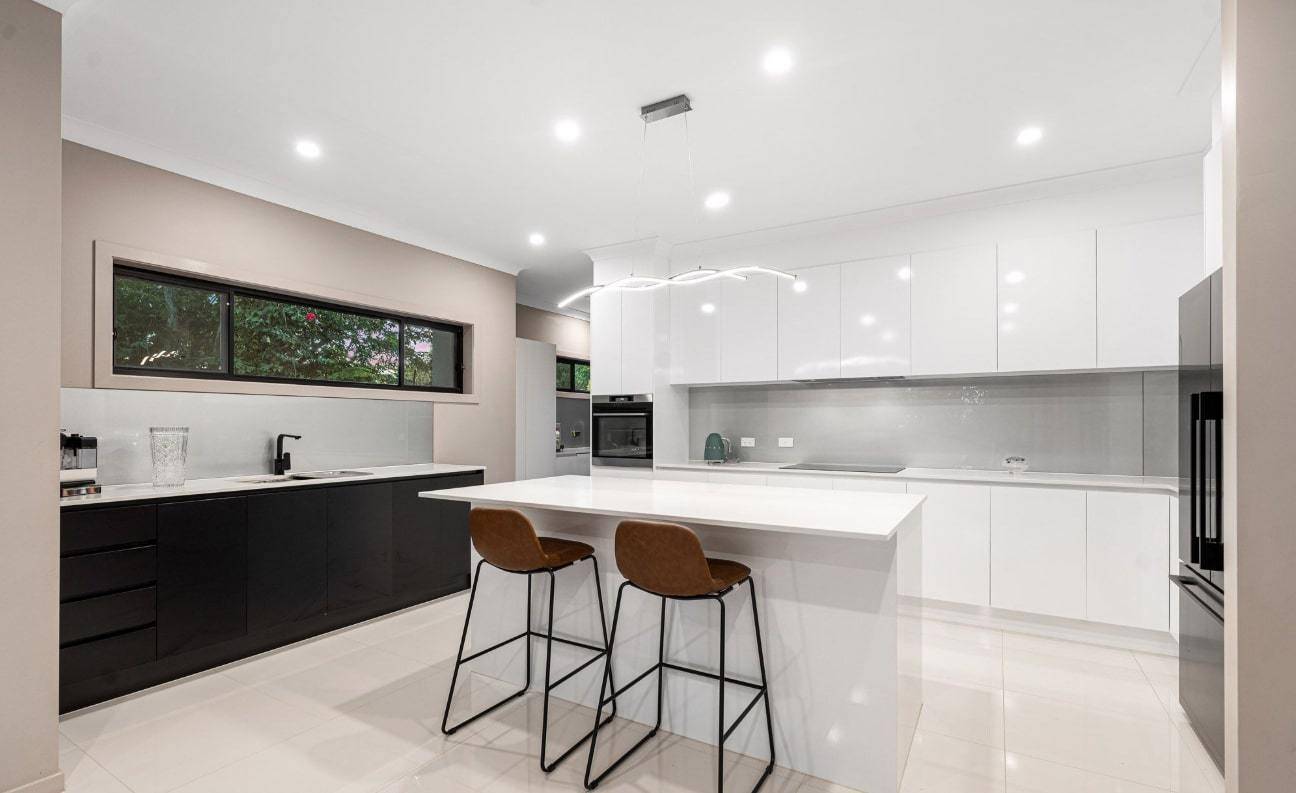 The heart of the home is a gourmet kitchen featuring premium AEG cooking appliances, a Fisher & Paykel dishwasher, soft-close cabinetry, stone benchtops, and abundant storage. Adjacent to the kitchen, a well-appointed butler's pantry and laundry area boasts quality finishes and provides direct access to a private drying courtyard.