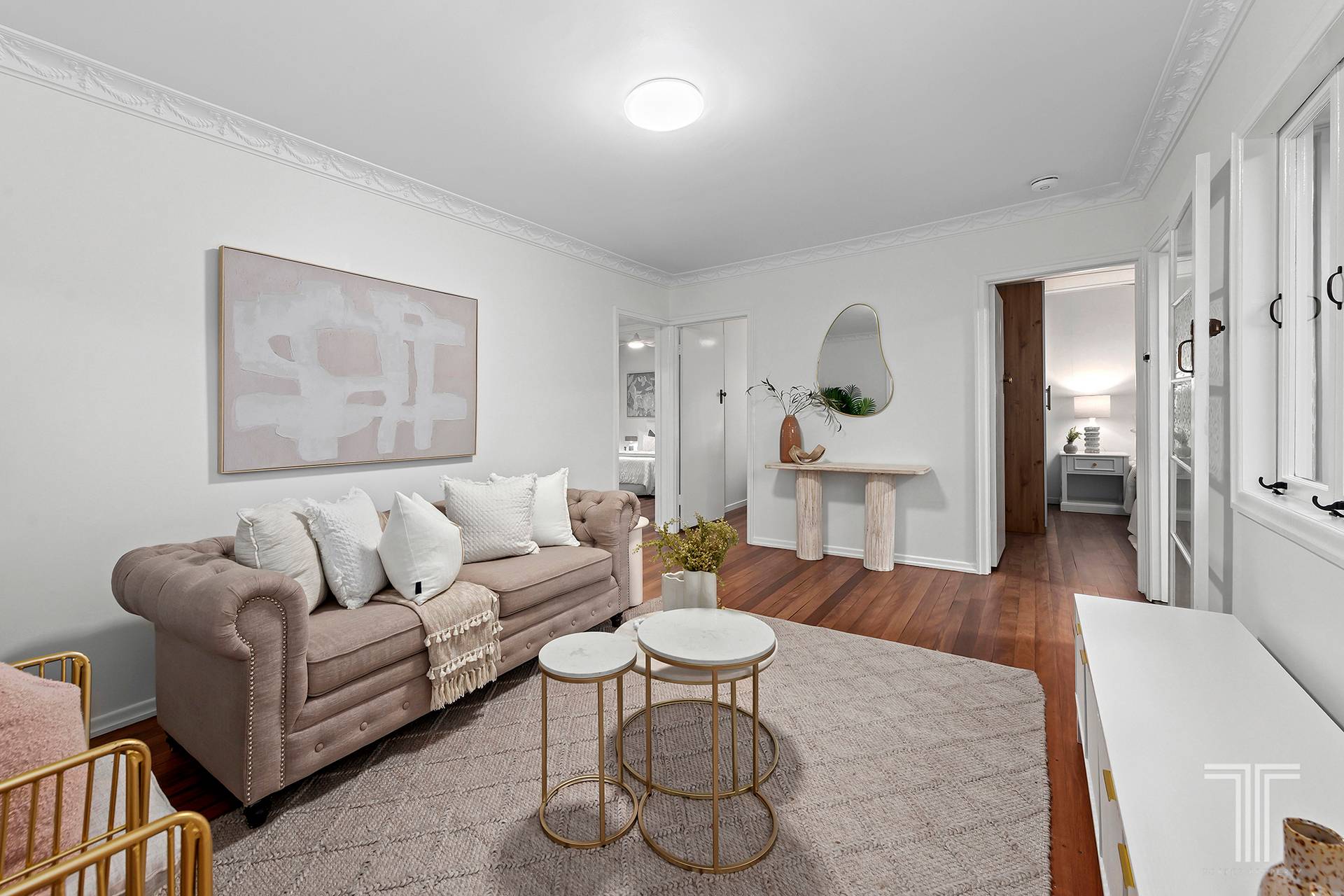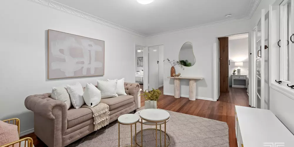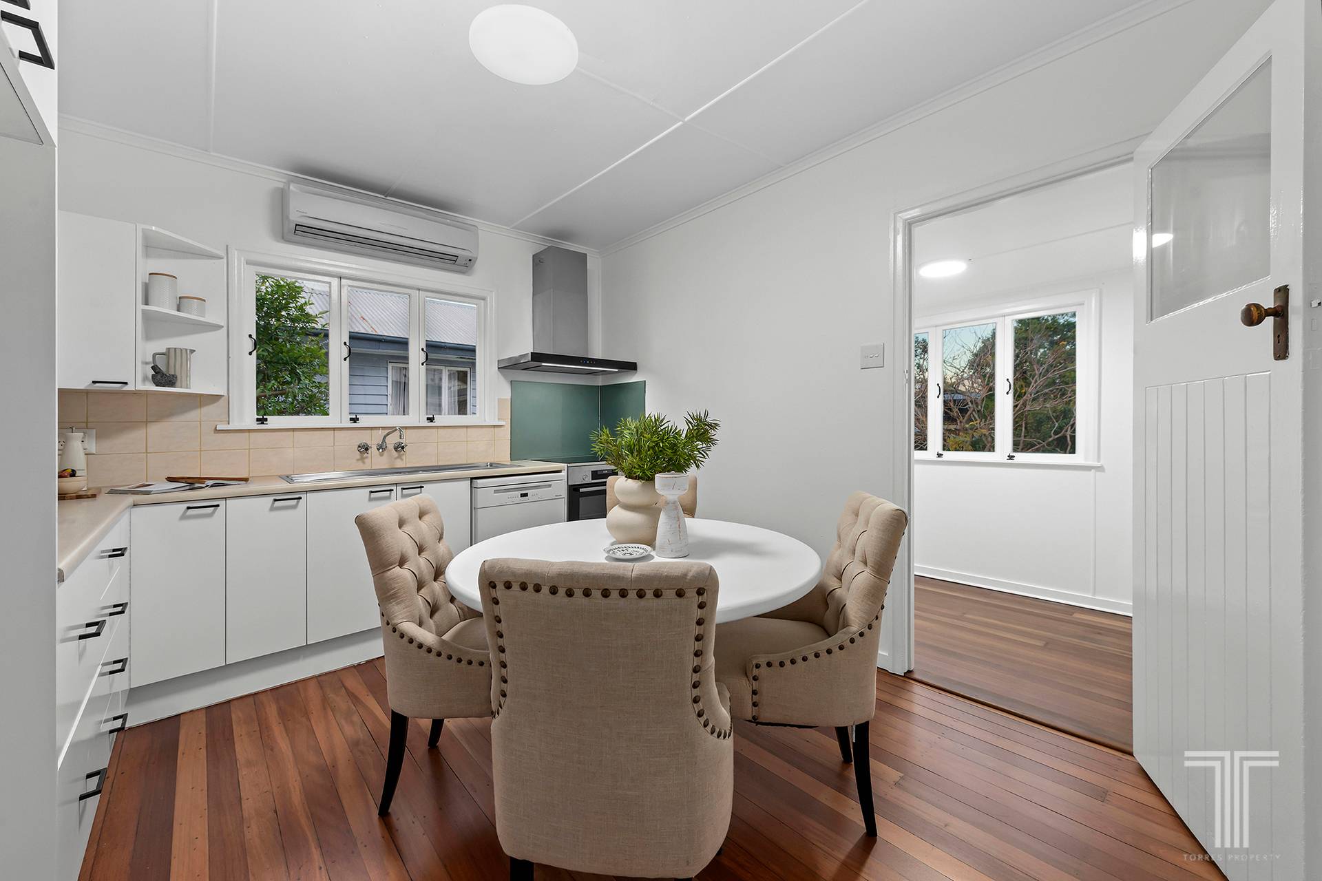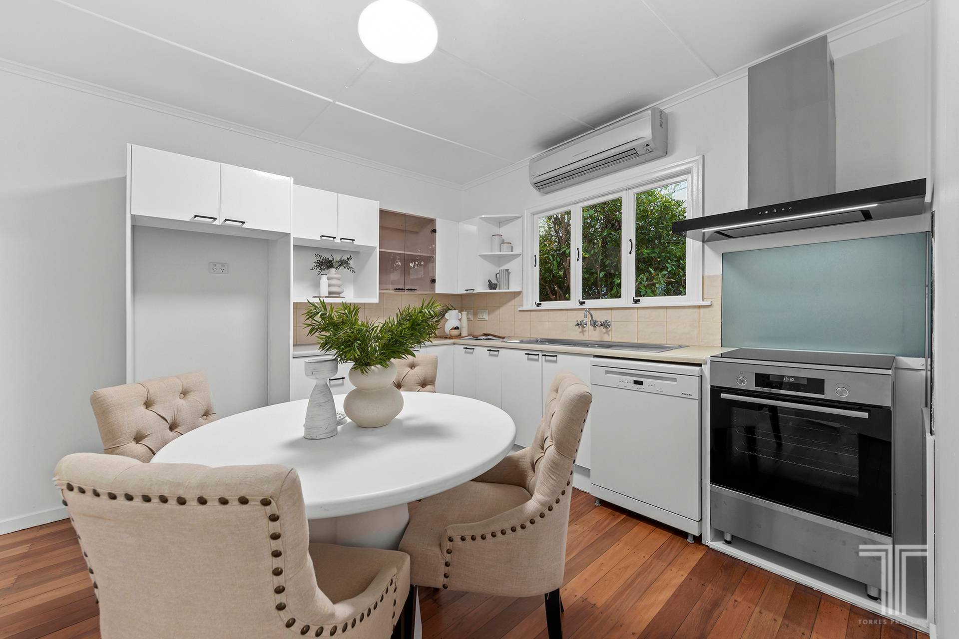 Light-filled interiors flow through open-plan living and dining zones, where freshly polished timber floors and calming neutral tones create an uplifting sense of warmth. The kitchen blends modern finishes with functionality, overlooking a leafy backyard that feels like your own private retreat.