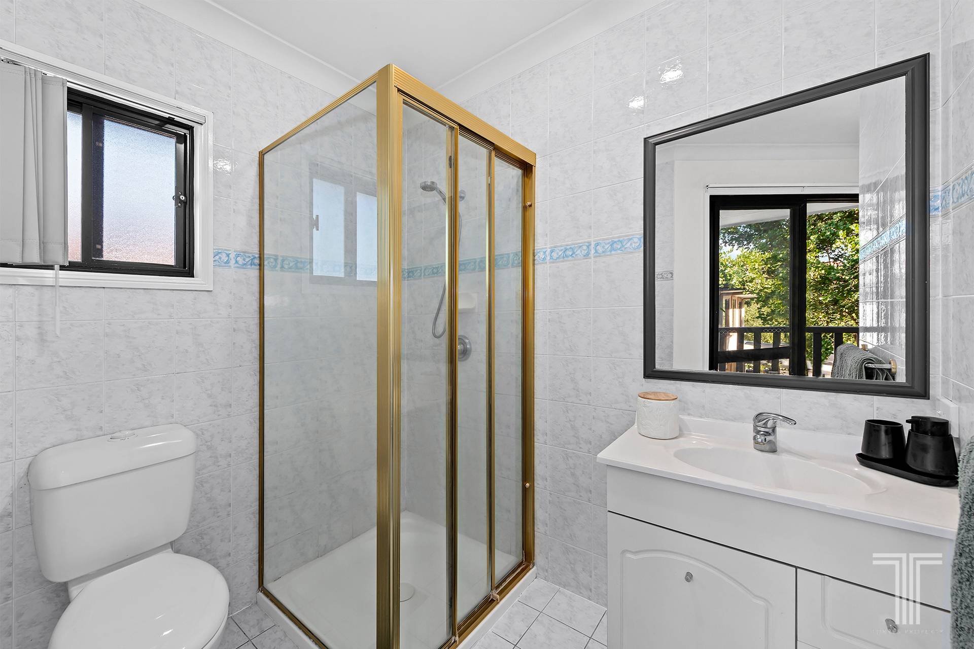 All three bedrooms are located on the upper level, each with built-in robes. Verdant views are on display in the light-filled master suite, which reveals an ensuite and a balcony, where you can enjoy quiet moments. A second bathroom is upstairs, a powder room is downstairs, and the laundry is housed in the secure single-car garage.