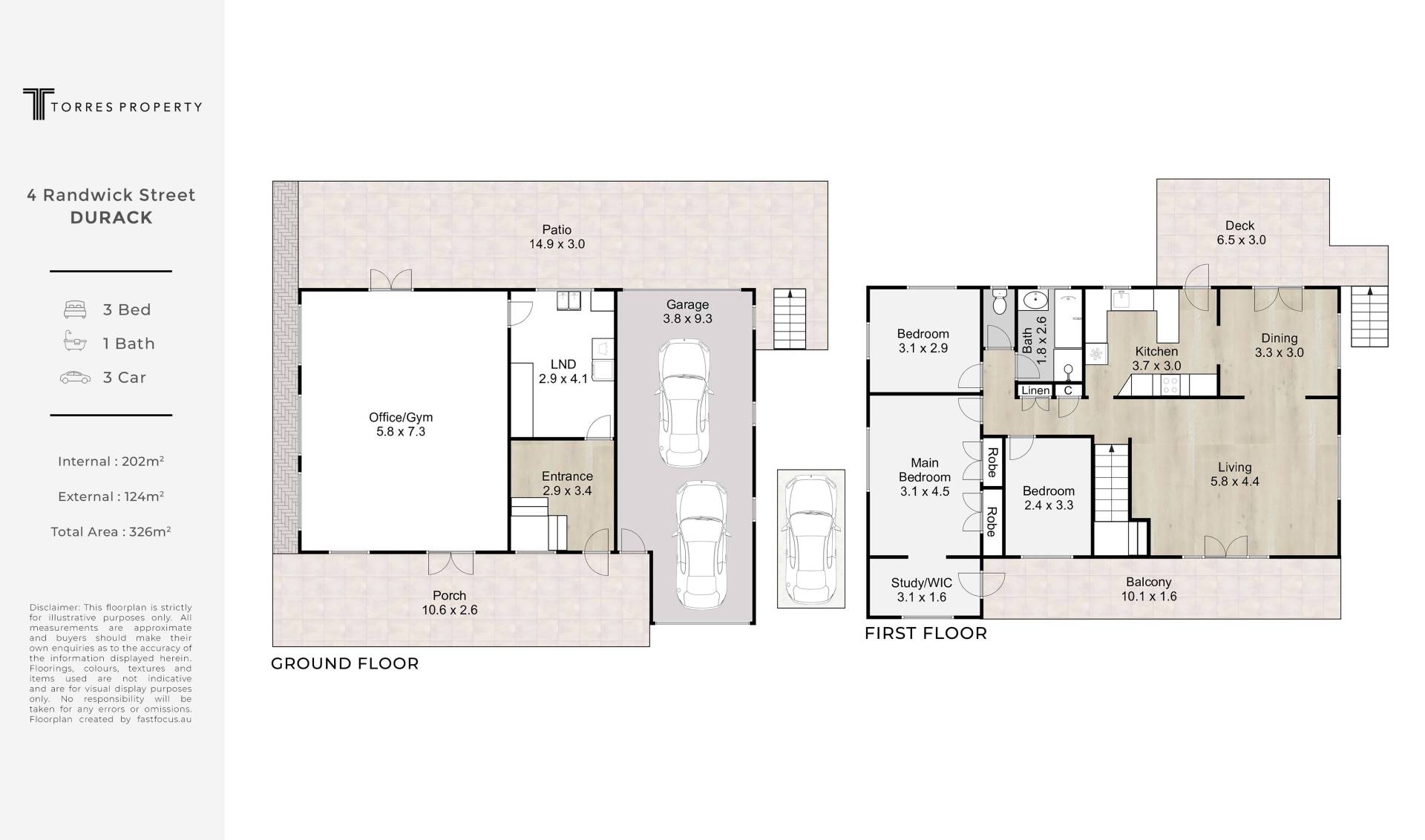 Disclaimer: Whilst every care is taken in the preparation of the information contained in this marketing, Torres Property will not be held liable for any errors in typing or information. All interested parties should rely upon their own enquiries in order to determine whether or not this information is in fact accurate.