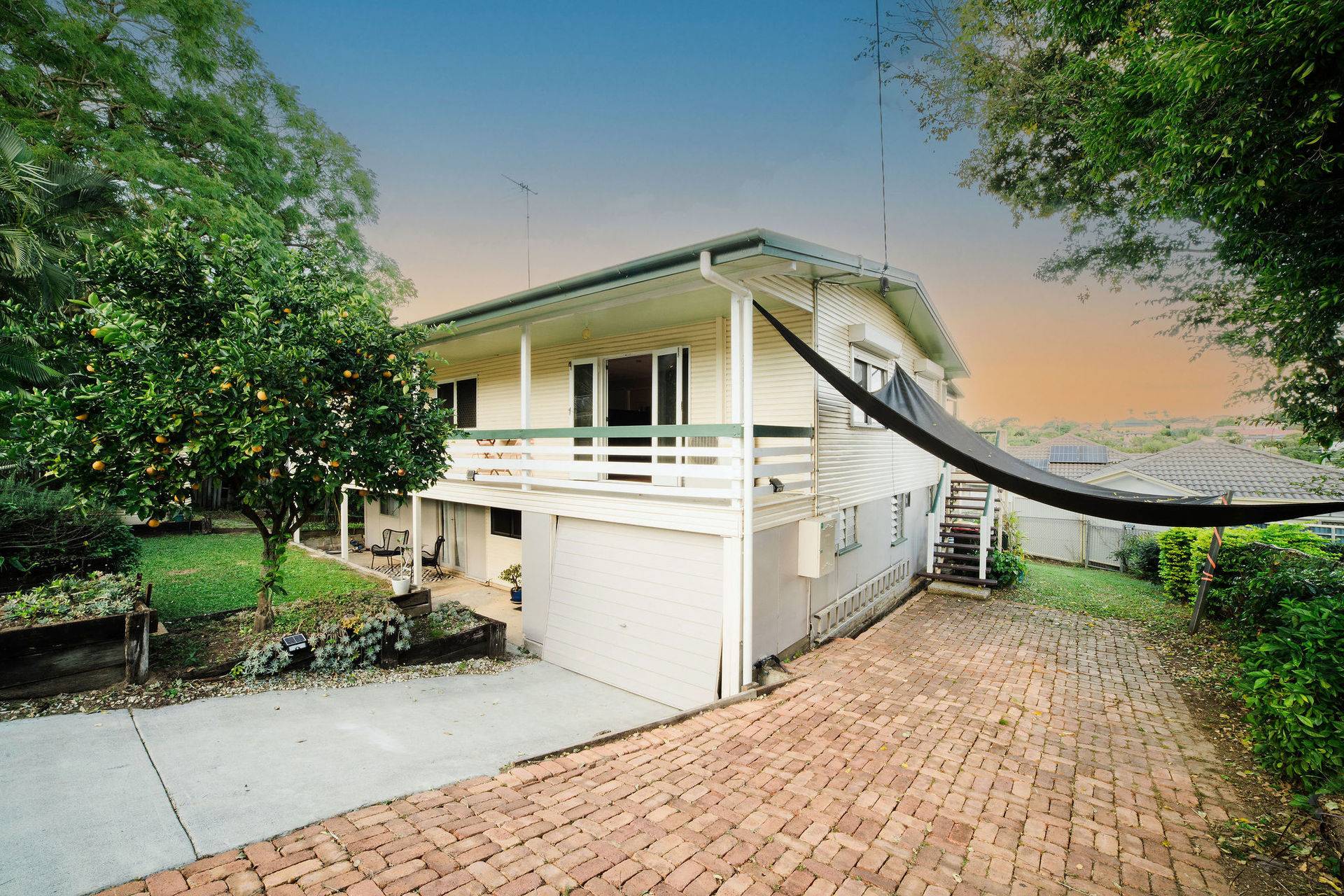 Situated behind a remote lock-up gate, the property features a tandem garage and shaded parking for additional cars, a boat or a caravan.