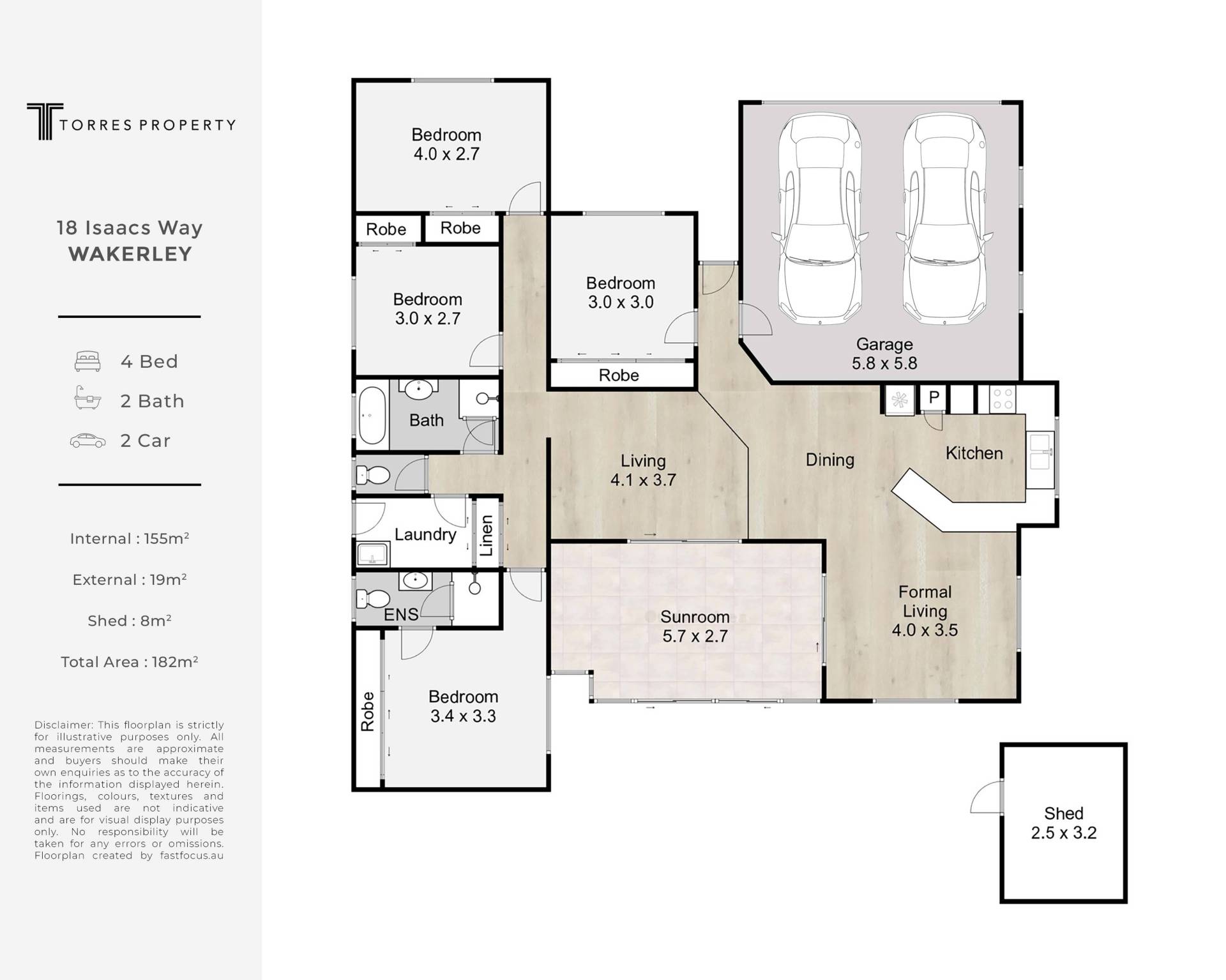 Disclaimer: Whilst every care is taken in the preparation of the information contained in this marketing, Torres Property will not be held liable for any errors in typing or information. All interested parties should rely upon their own enquiries in order to determine whether or not this information is in fact accurate.