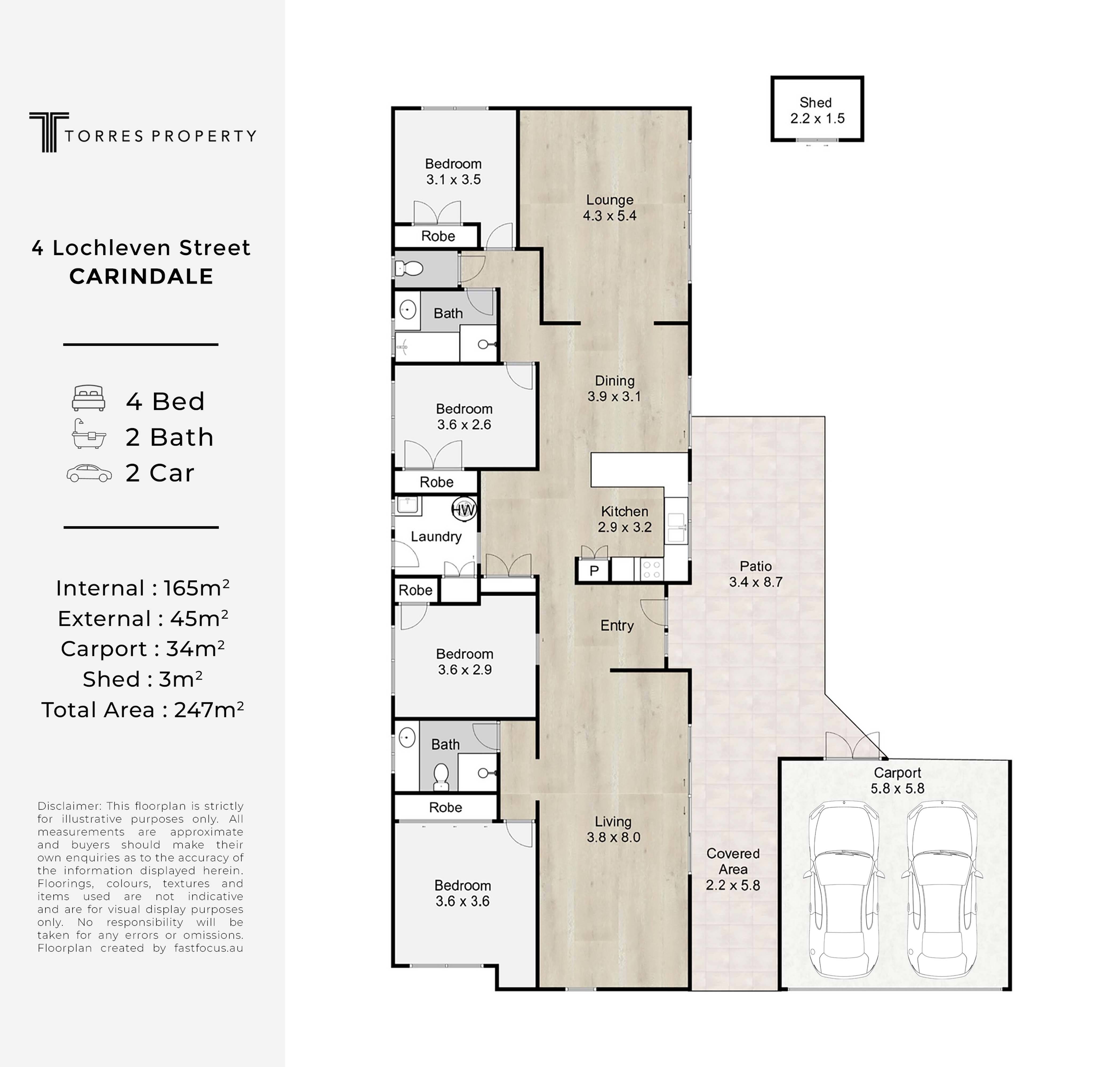 Disclaimer: Whilst every care is taken in the preparation of the information contained in this marketing, Torres Property will not be held liable for any errors in typing or information. All interested parties should rely upon their own enquiries in order to determine whether or not this information is in fact accurate.