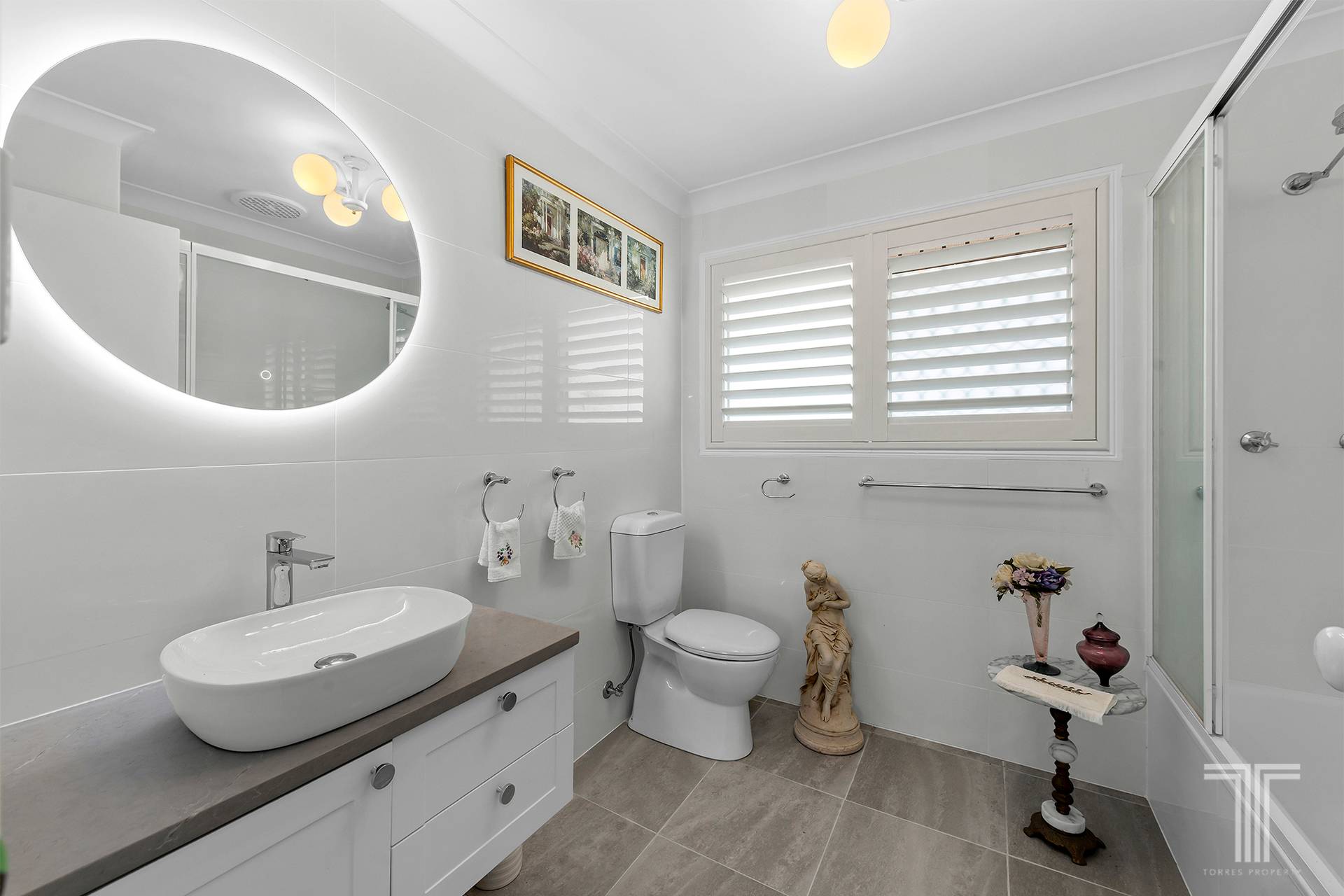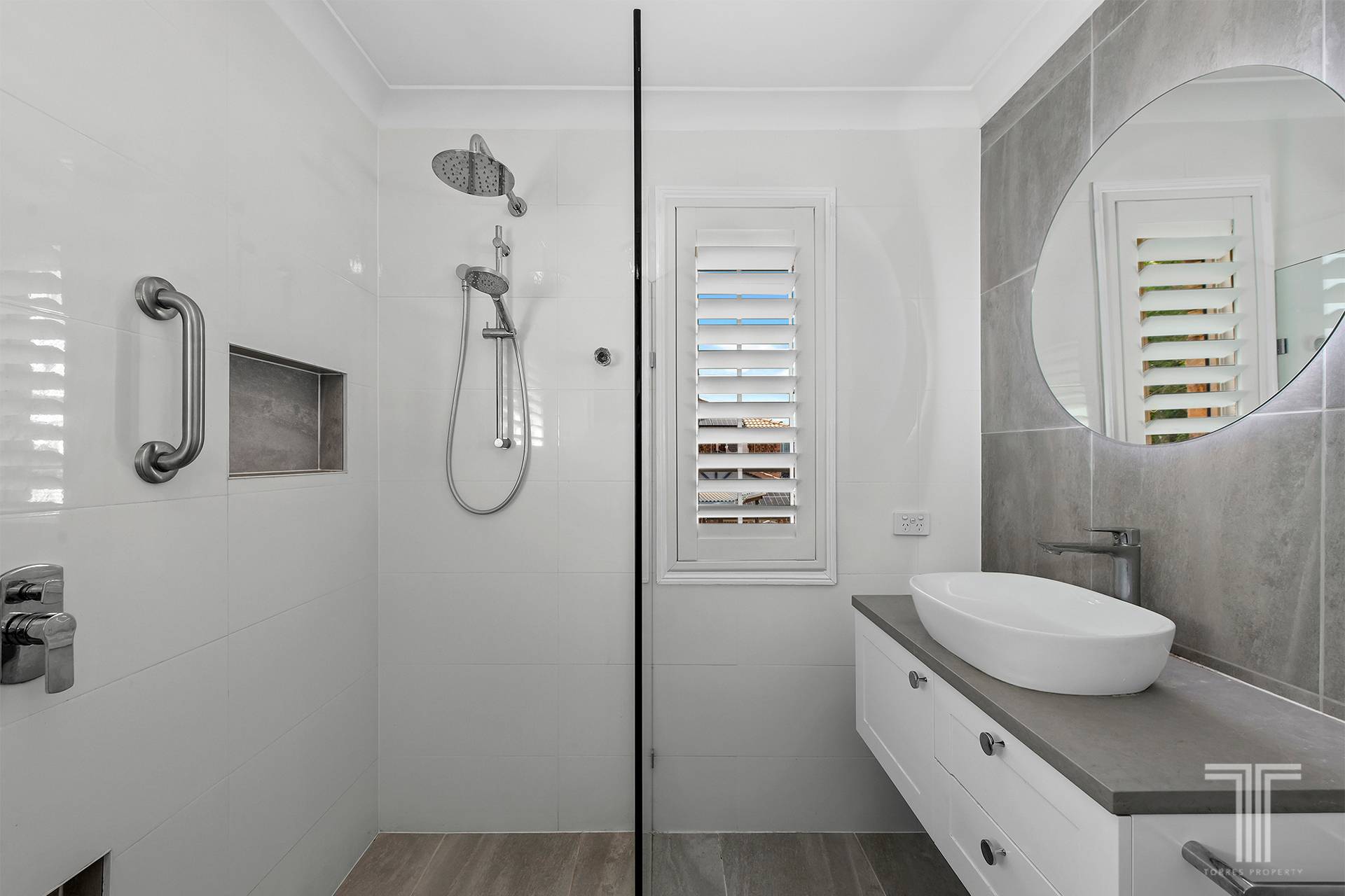 • Modern main bathroom recently renovated in a clean, contemporary style