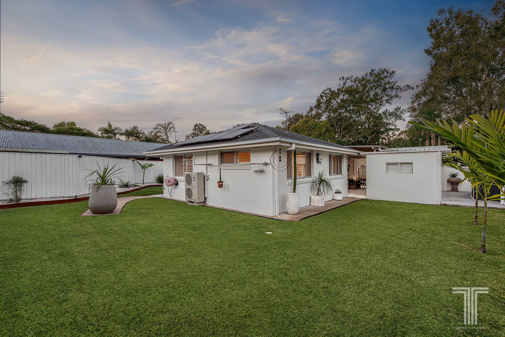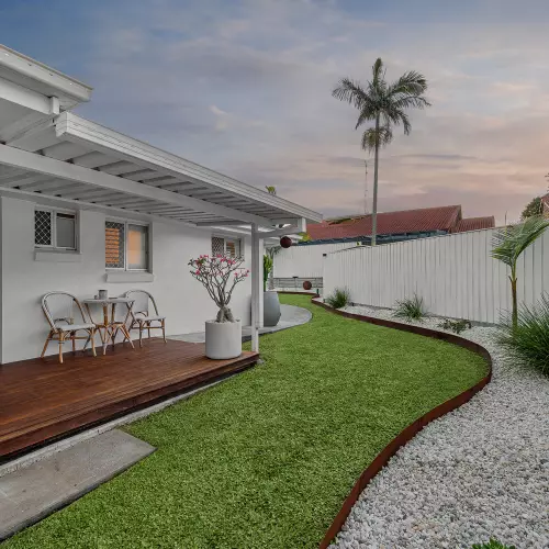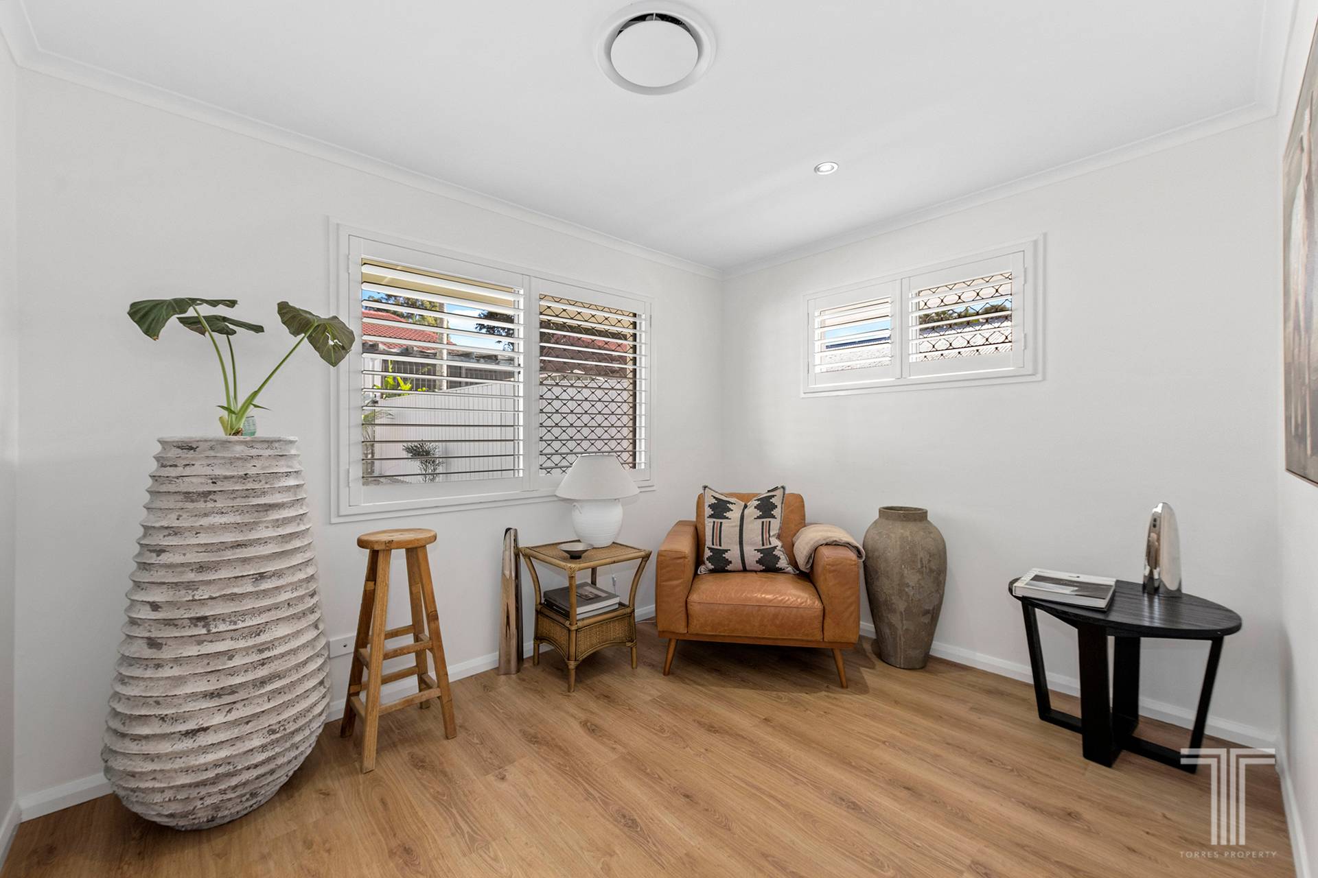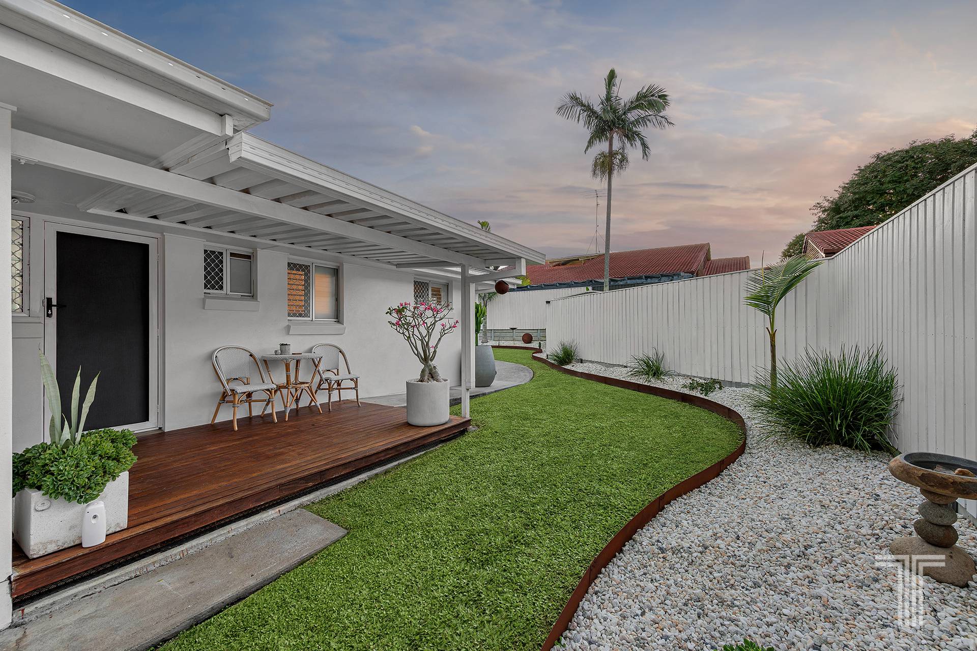 A home of stylish functionality and peaceful privacy, this three-bedroom house rests on a sought-after street opposite tranquil greenery and 700m from Westfield Carindale.