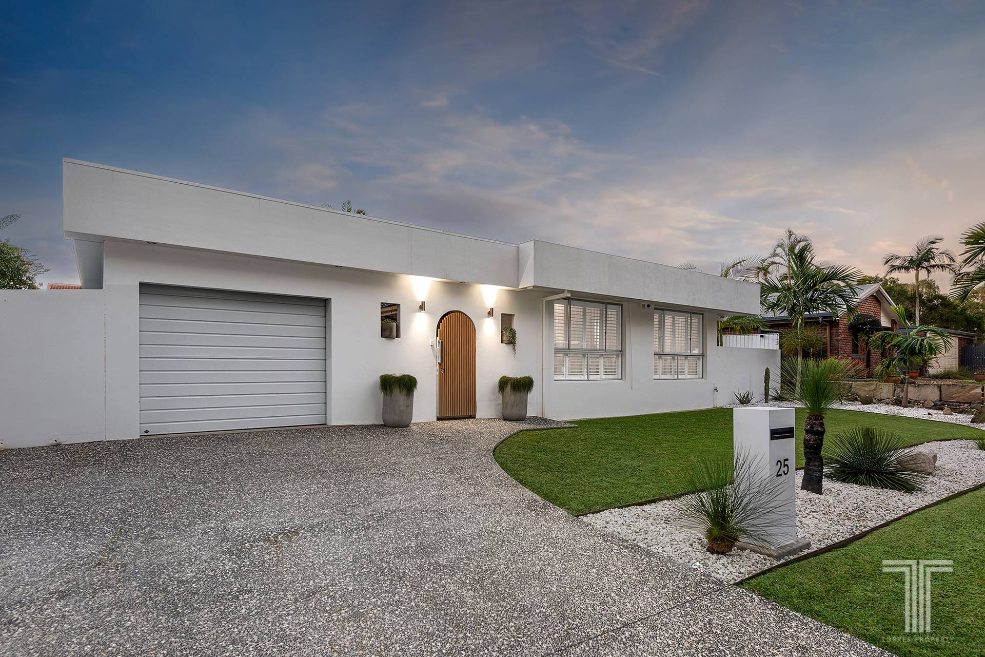 Harnessing the easterly sunshine atop a fully fenced, landscaped 586sqm lot, the coastal façade and single-level layout provide the framework for Palm Springs-inspired living and entertaining, perfect for families, couples and downsizers.