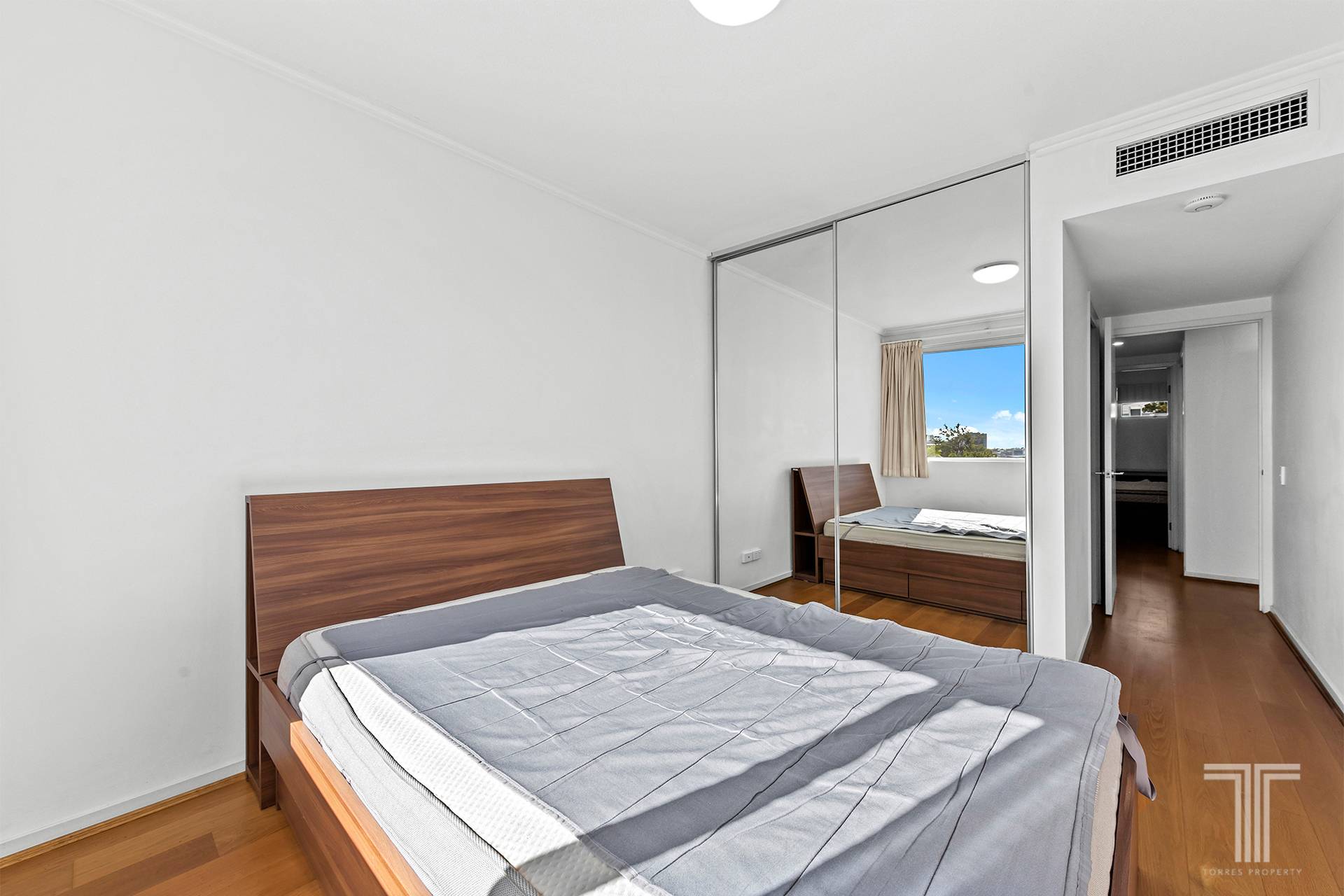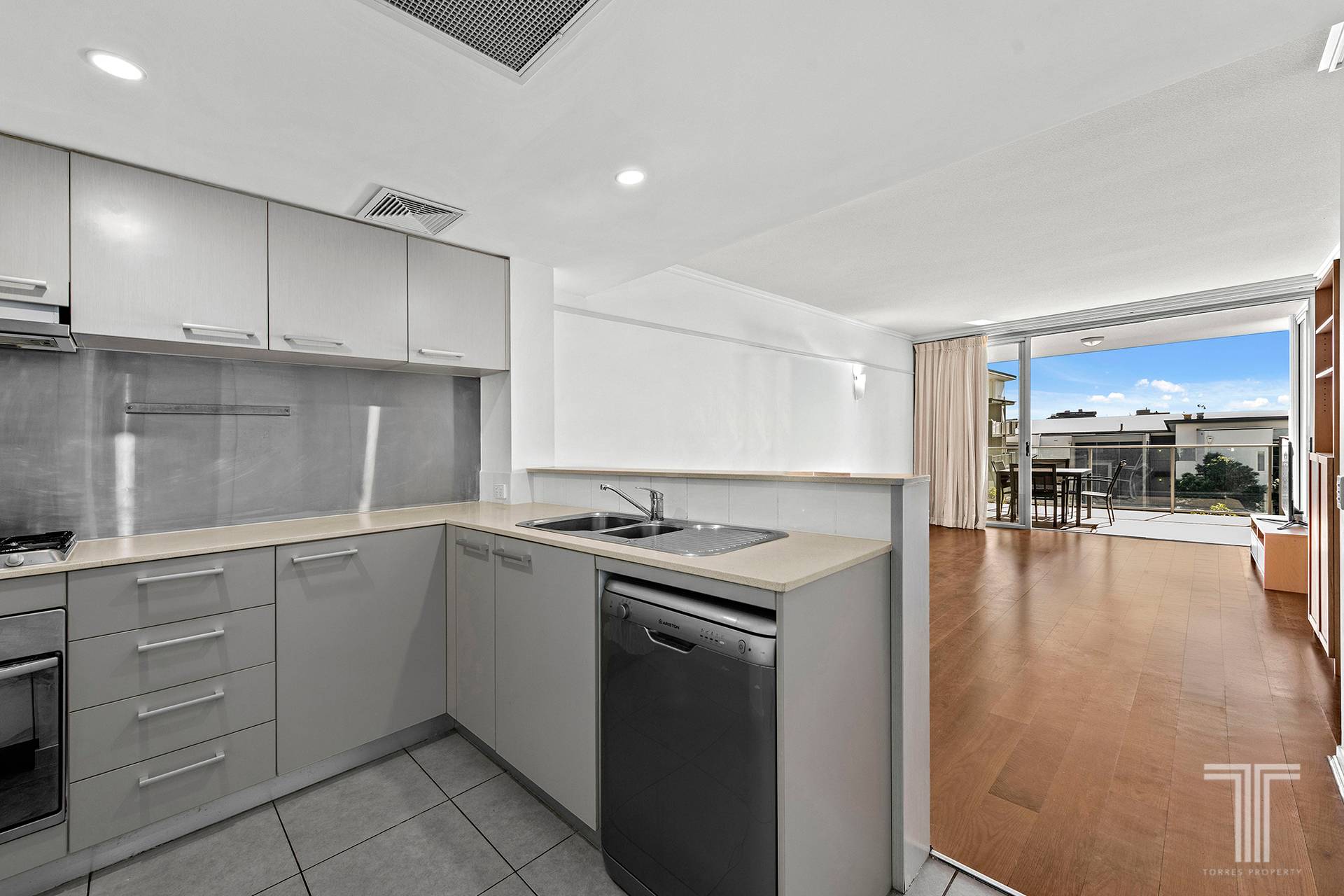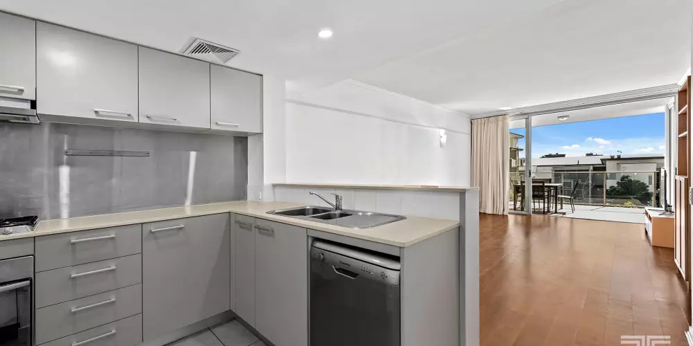 The living and dining area extends to the sunlit balcony, and the stonetop kitchen is perfectly appointed with a gas stove, dishwasher and good storage. Both bedrooms include mirrored built-in robes, the master suite boasts an ensuite and balcony access, and a second bathroom, separate laundry, and a secure car space finalise the floor plan.