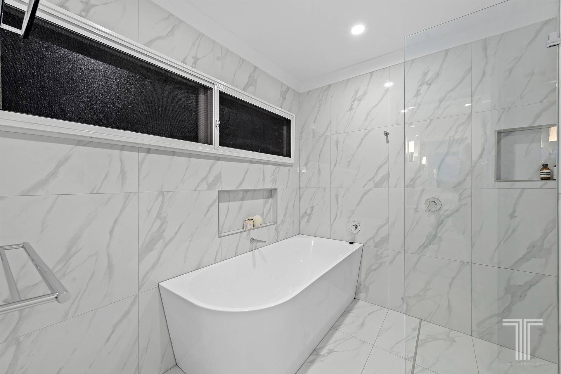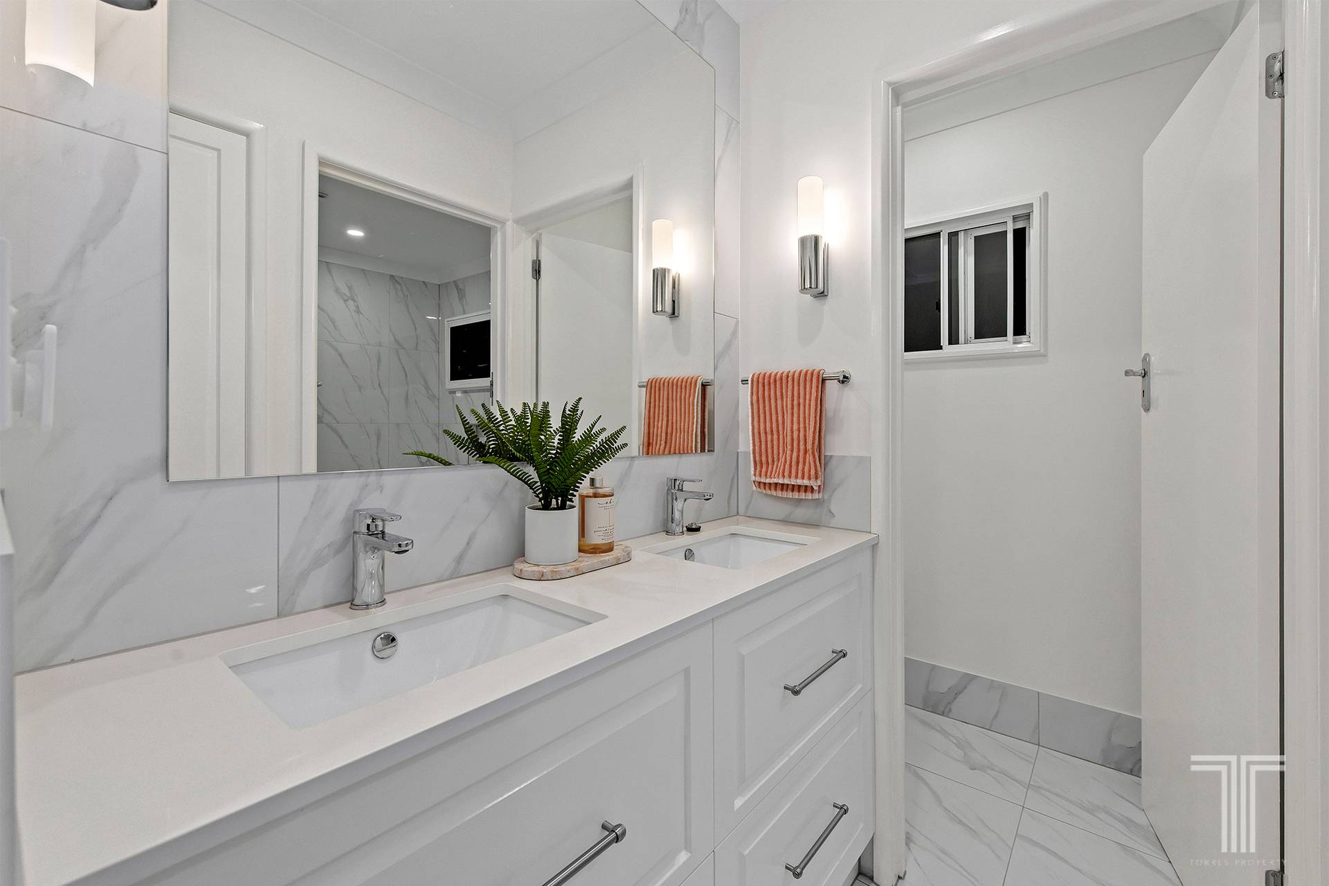Take in the leafy vistas here or descend downstairs, where a family area, rumpus and study facilitate relaxation, work and play. Adding to the exquisite layout, the alfresco setting creates a haven where parents can soak in the serenity from the spa and children can play atop the flat fenced yard housing a Vuly jungle gym and custom cubby house.