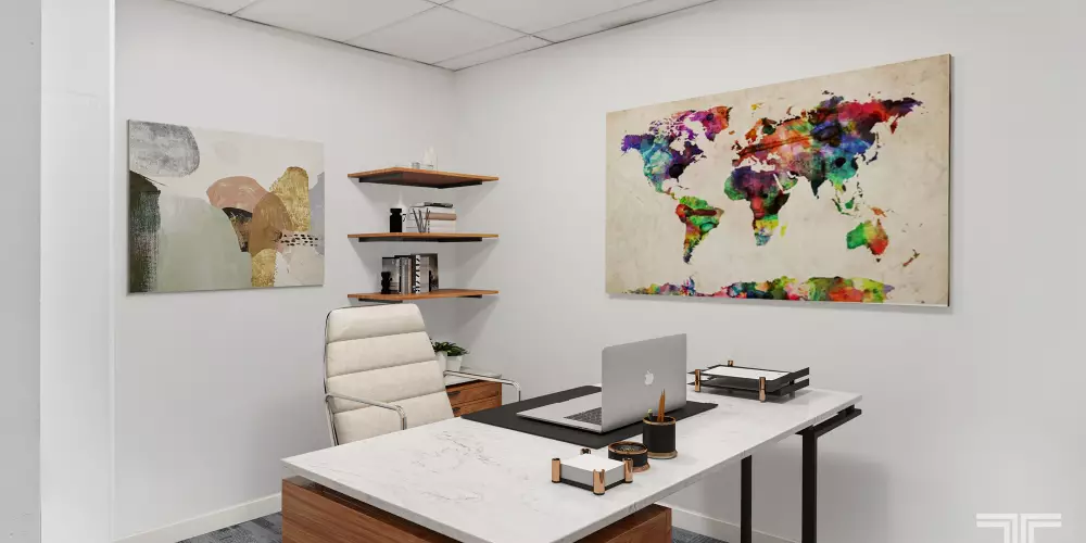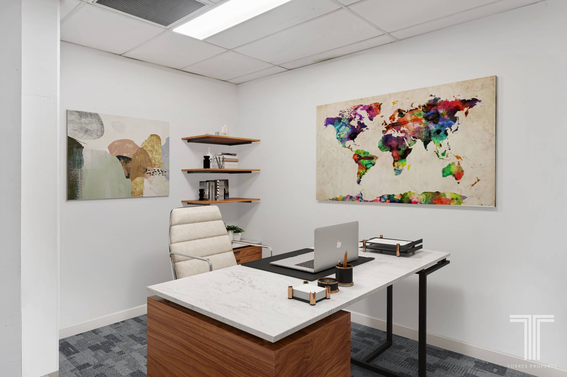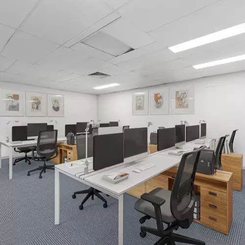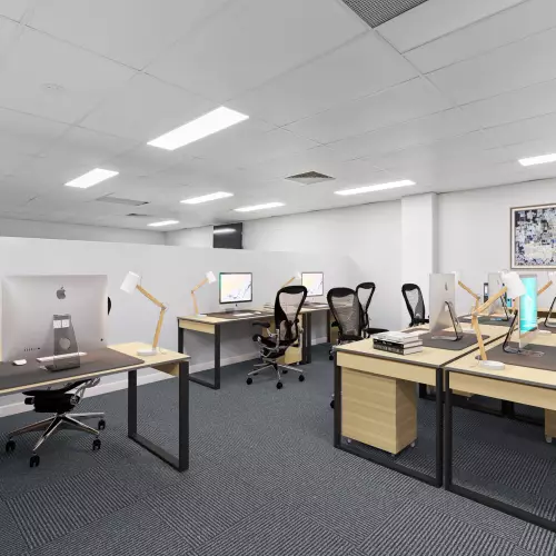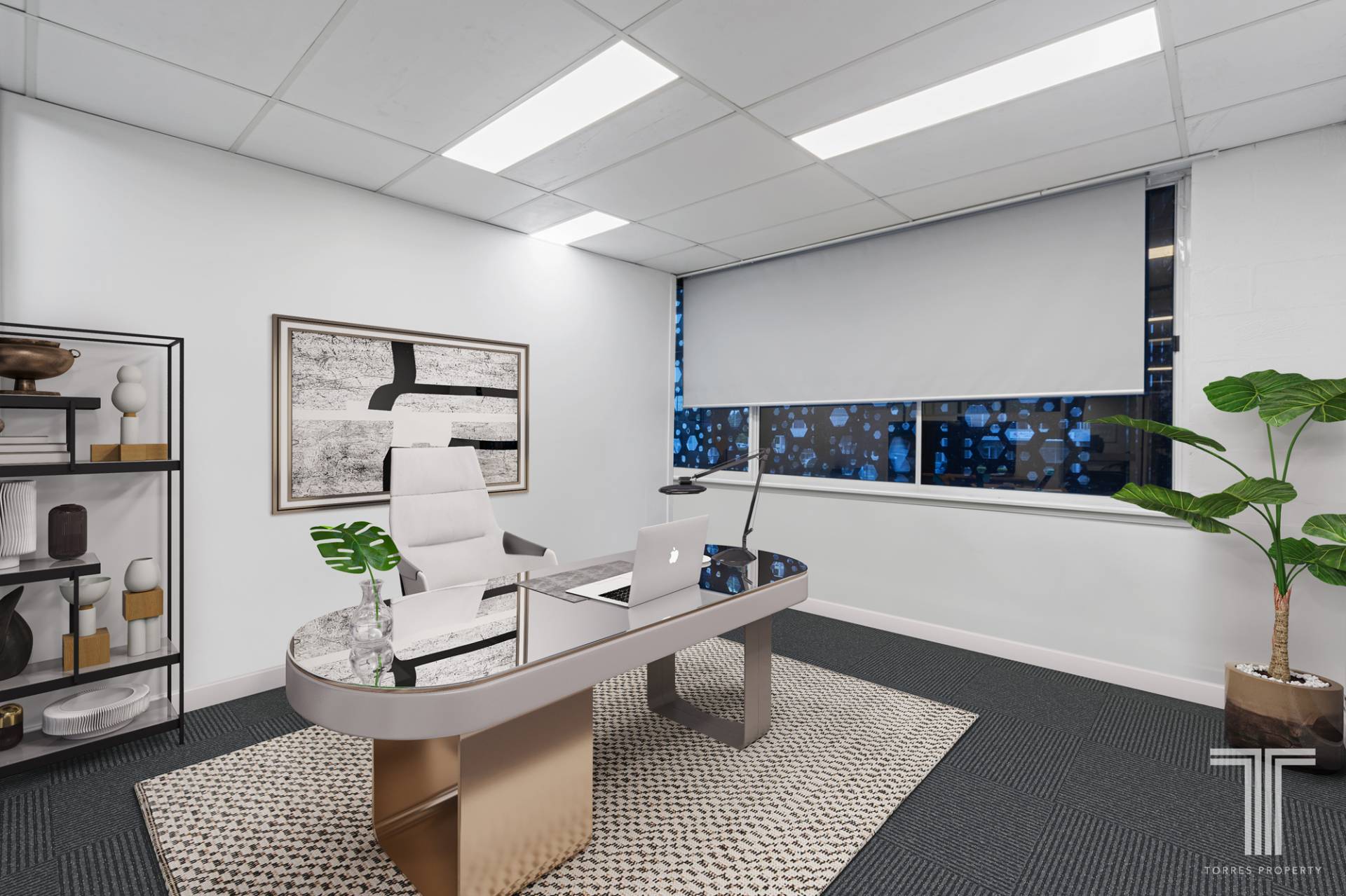 The office space is offered for lease and is not furnished. Digitally staged images have been used in this campaign to demonstrate the potential layout and use of the space.