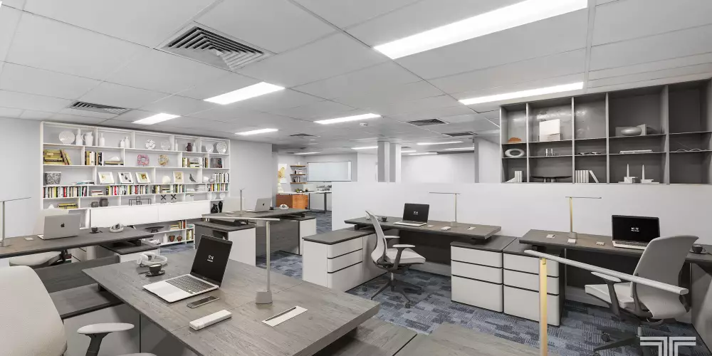 - Multiple private offices, open work areas, and dedicated meeting rooms