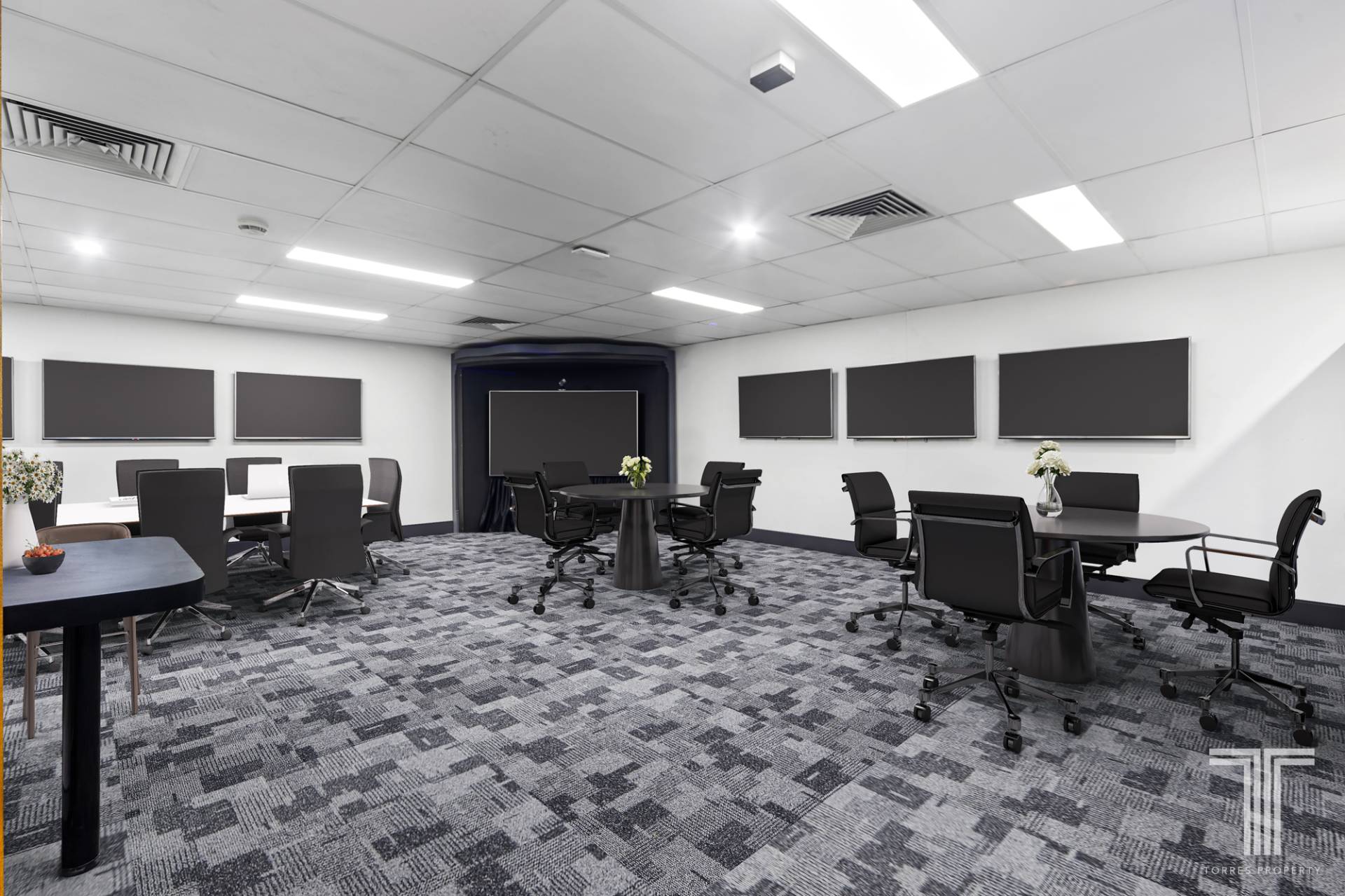 Downstairs, you’ll be greeted by a welcoming reception area that leads into a huge open-plan meeting room, multiple open workspaces, and private offices. A well-appointed kitchenette, bathrooms, and convenient storage areas ensure comfort and practicality for your team.