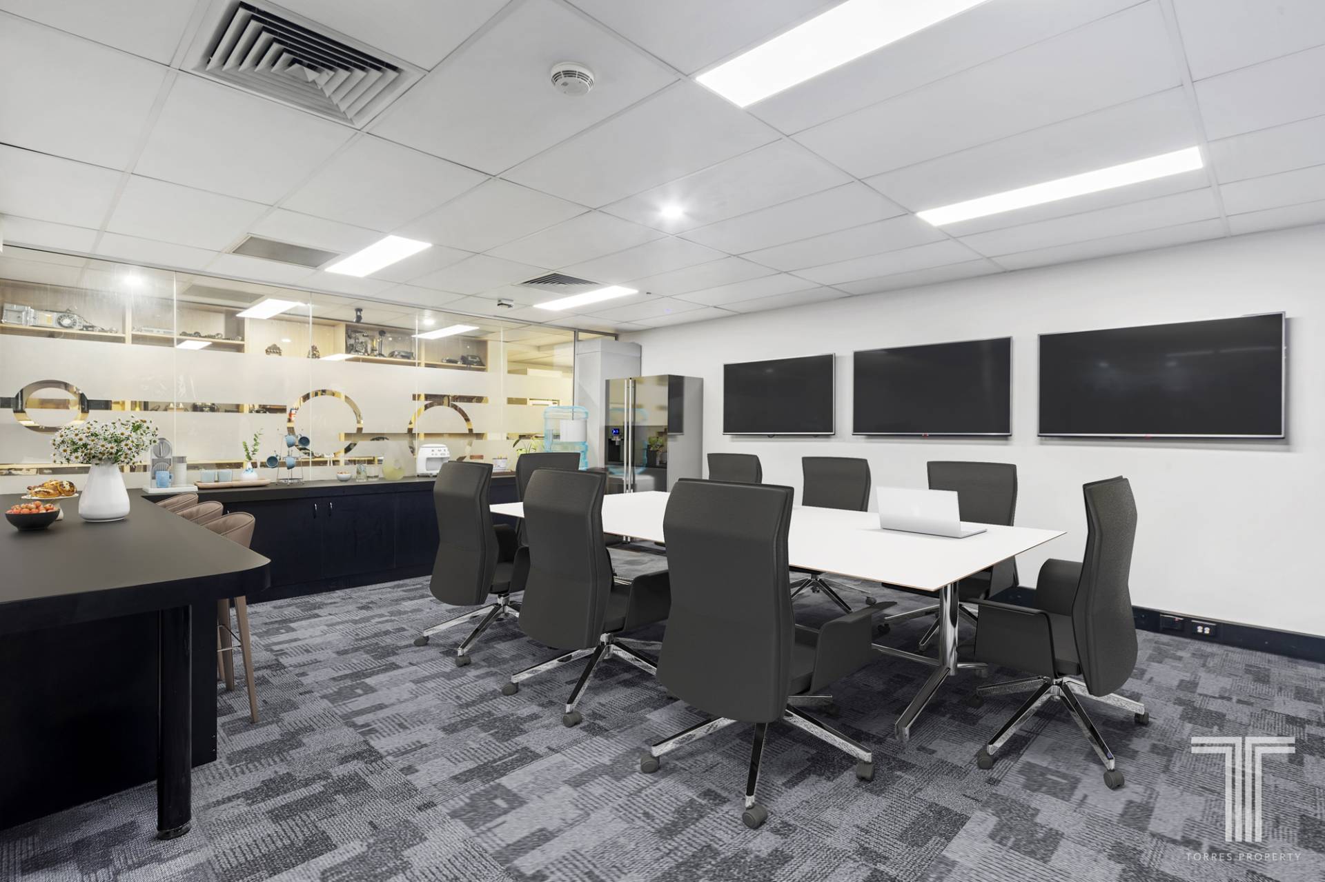 Upstairs, a second reception space sets the tone for professionalism, alongside a spacious boardroom, four private offices, a separate meeting room, additional storage, and multiple open-plan office zones. This level also features its own kitchenette and bathroom facilities, making it ideal for split-team operations or client-focused work.