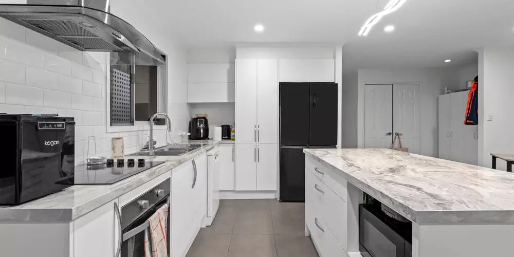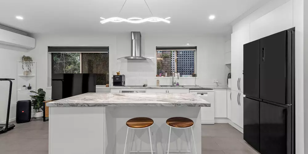 - Ceiling fans, LED downlights, feature kitchen lighting