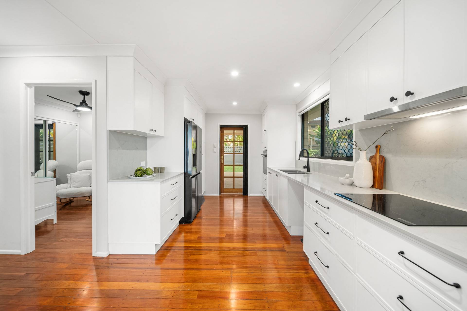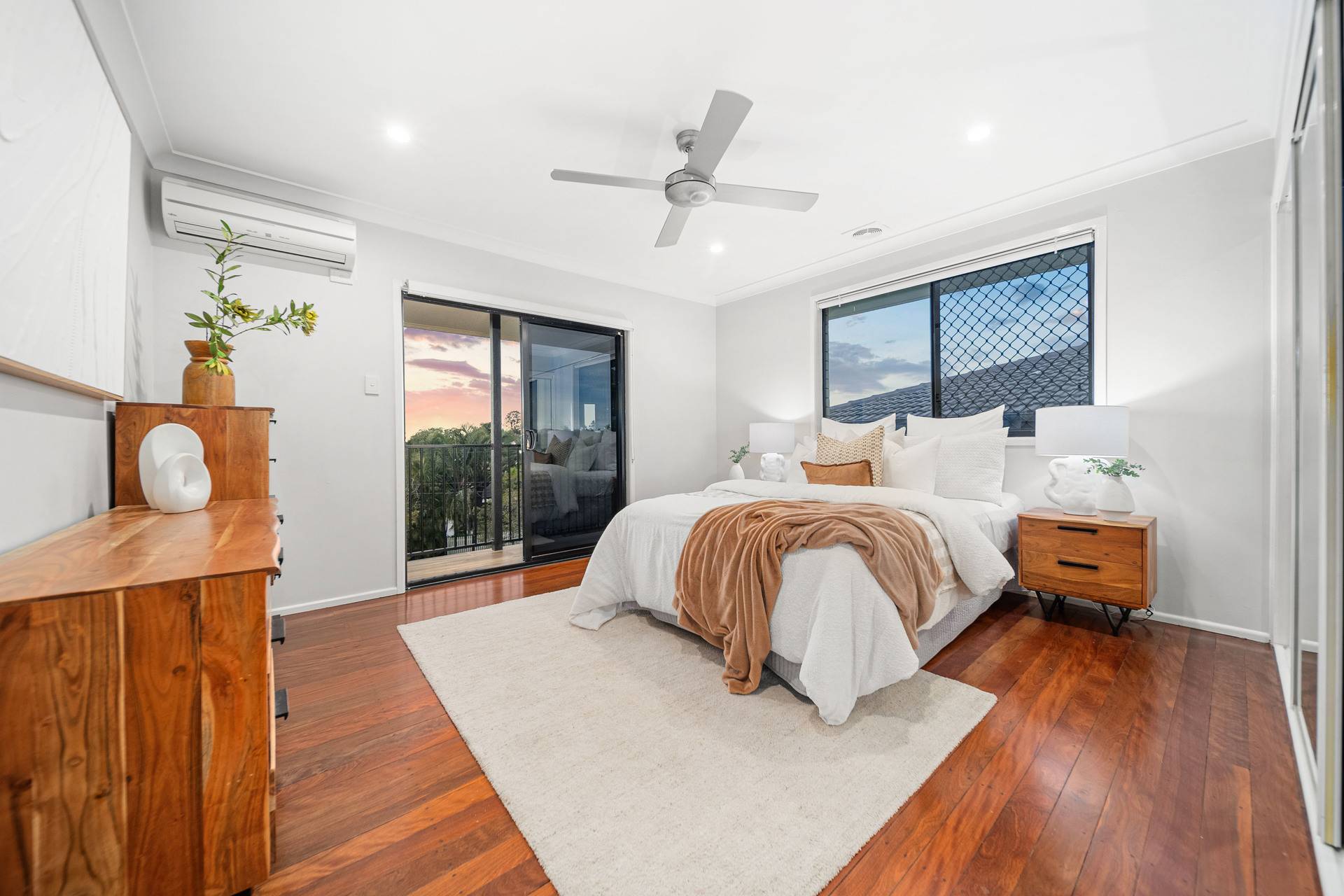 Hovering above the treeline and embracing a breezy northern aspect with mesmerising mountain views, this elevated family home promises a relaxing lifestyle in the coveted Mansfield State High School catchment.