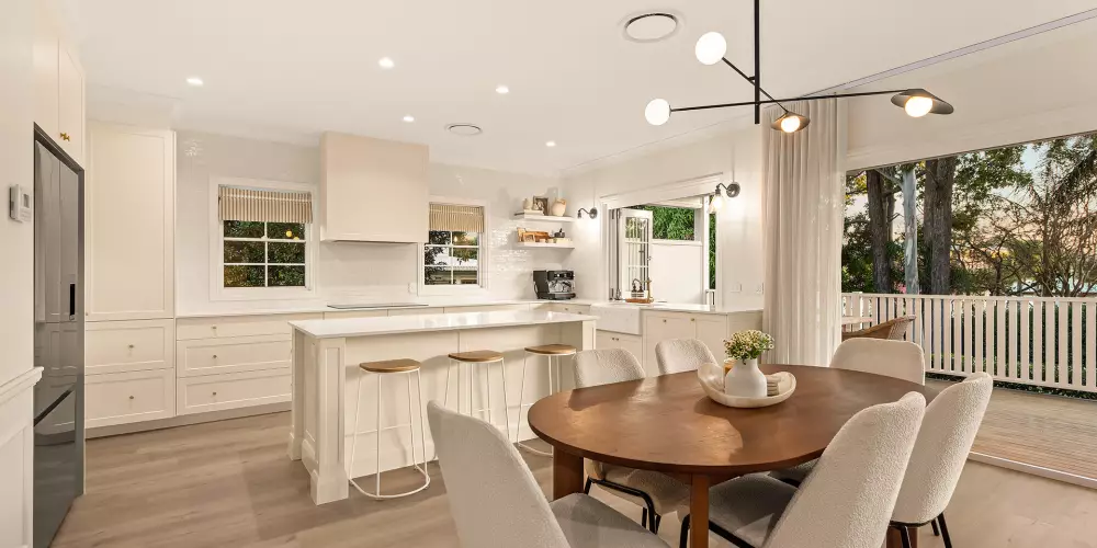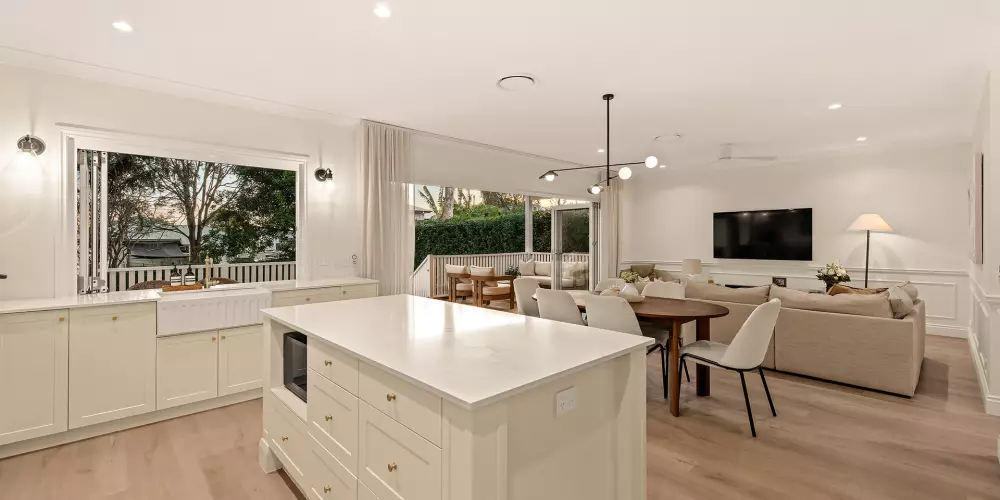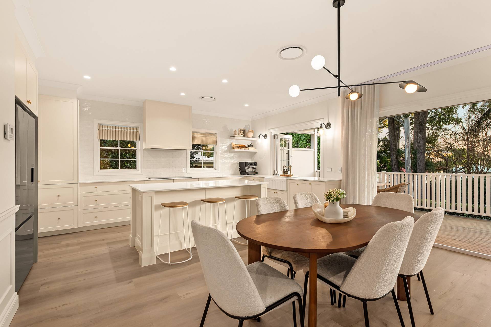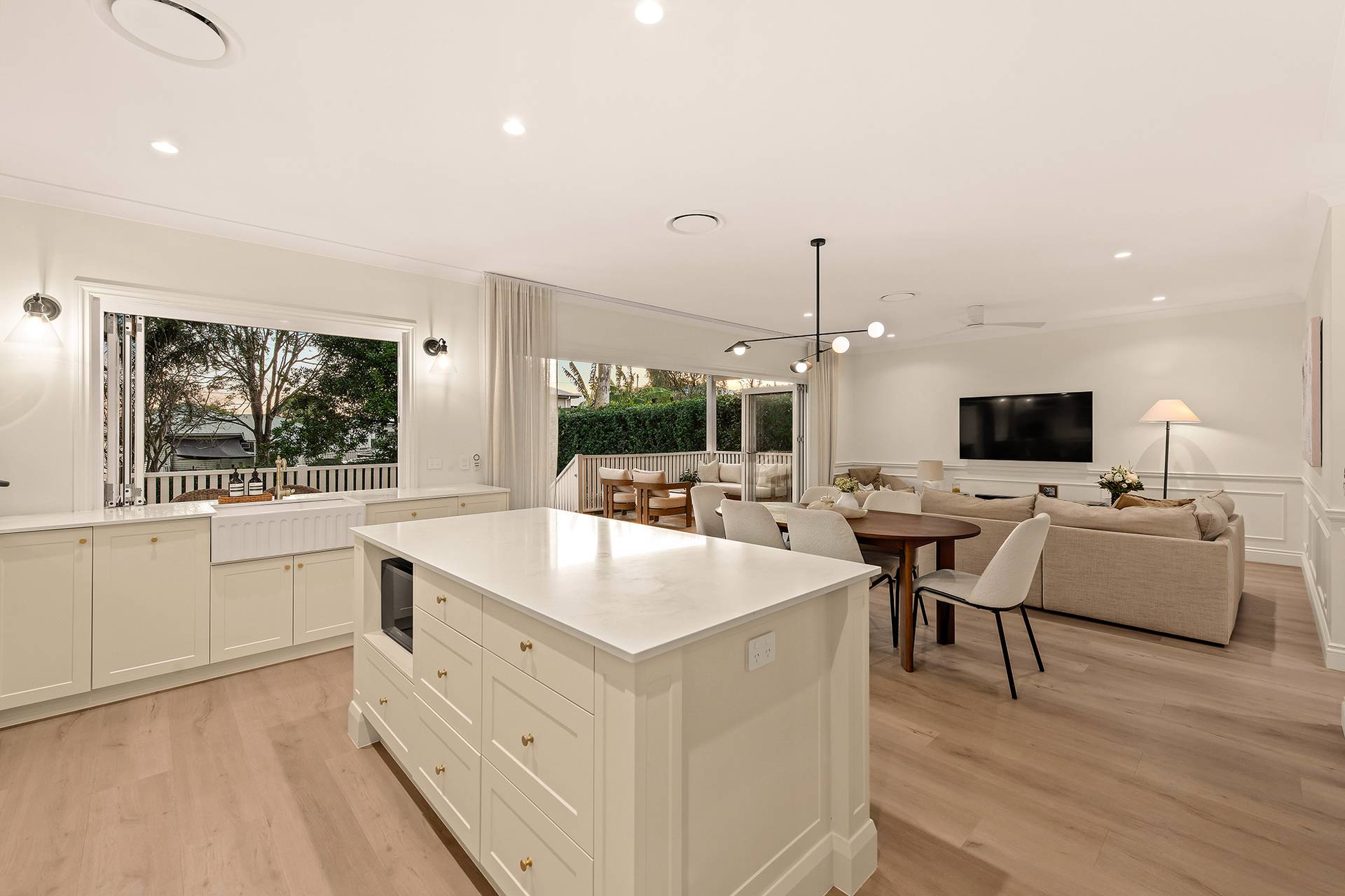 A showcase of style and picture-perfect in every form, this recently renovated picket fence house is an idyllic escape in Holland Park's leafy streets.
