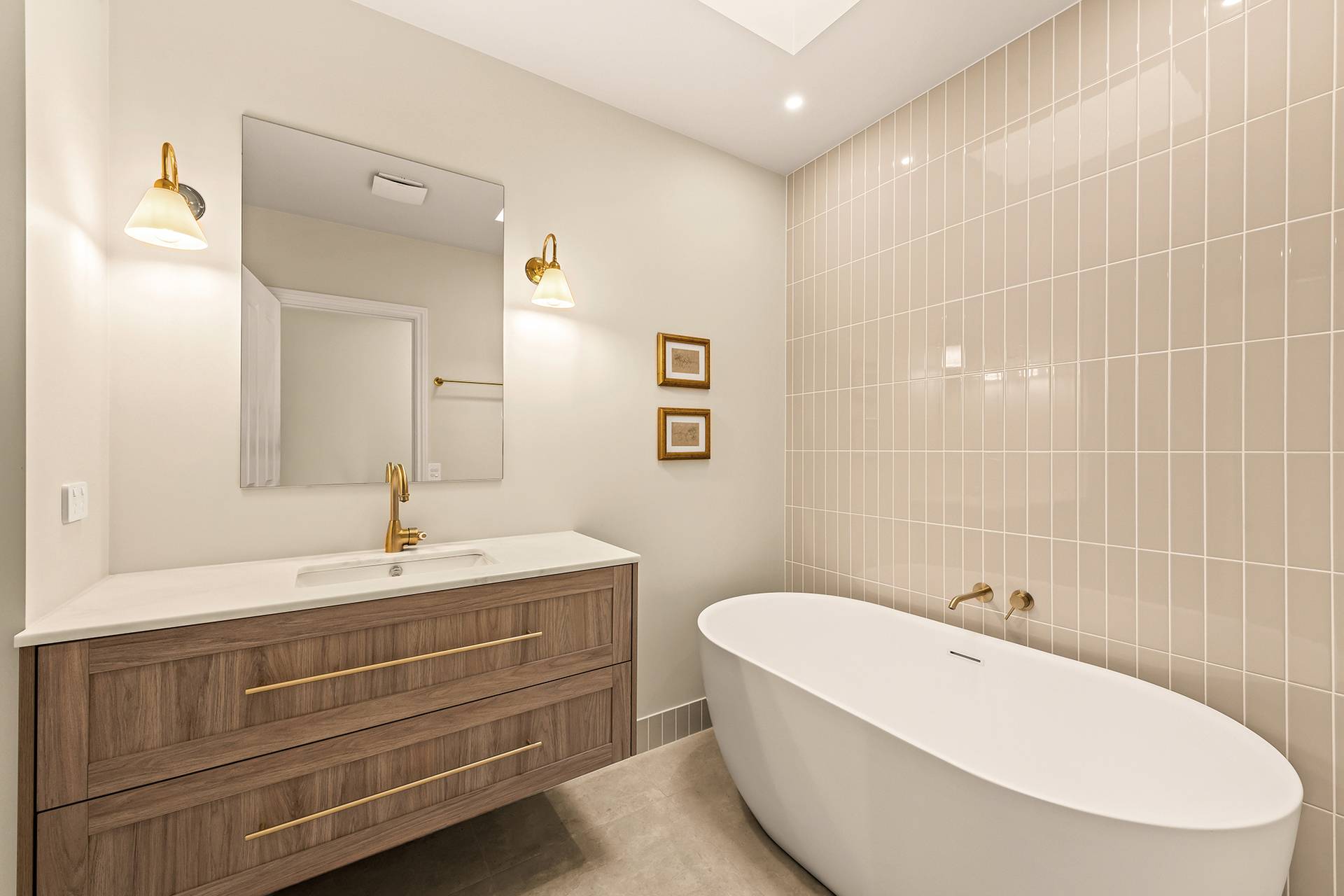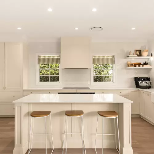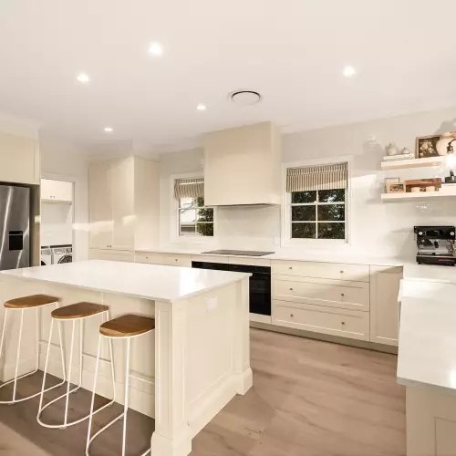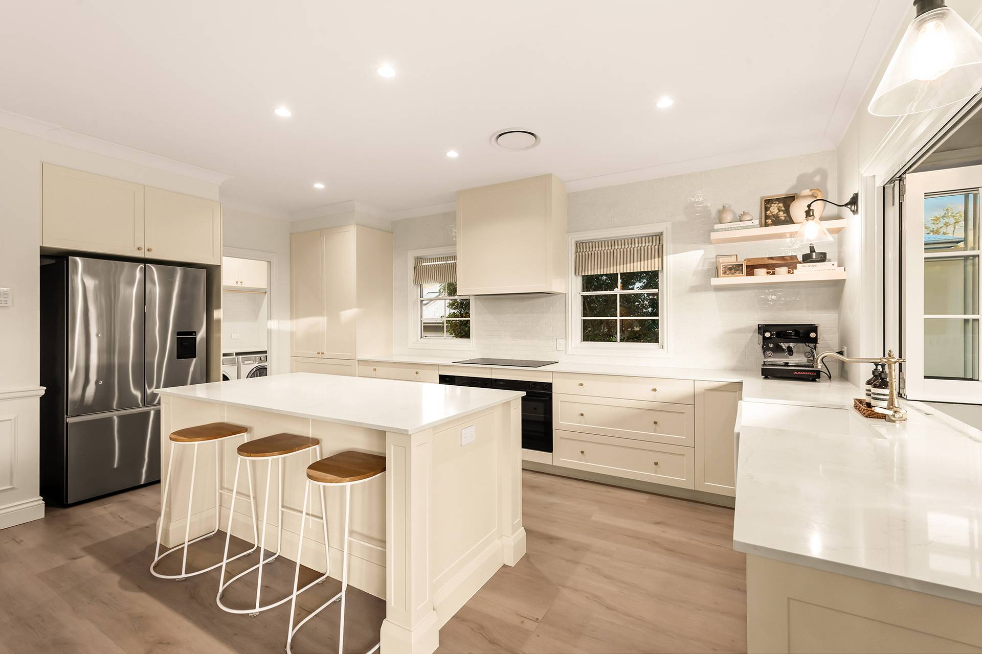 Curated across a single level, 2.7-metre ceilings feature overhead, traditional wainscoting and shaker-style cabinetry adorn the interiors, brass accents and timber tones add warmth, and a stunning display of stone and tiles evokes timeless modern elegance.