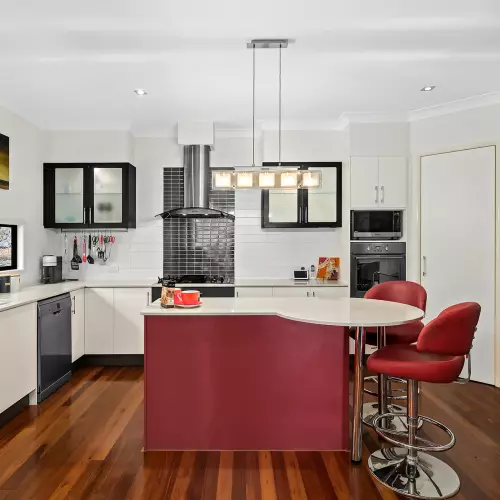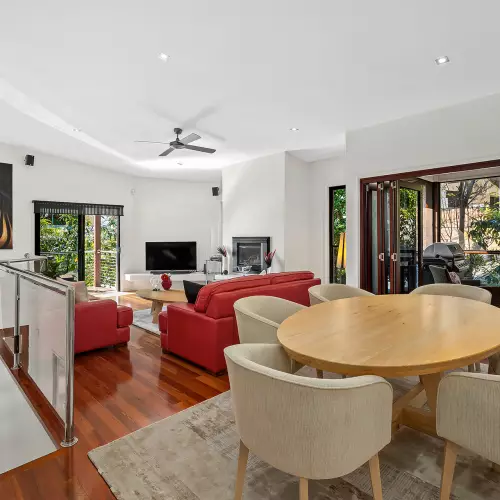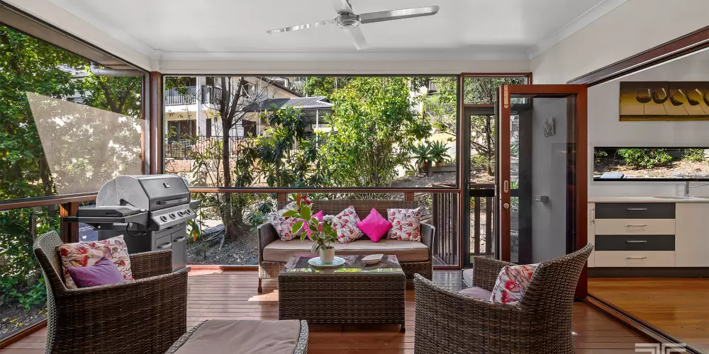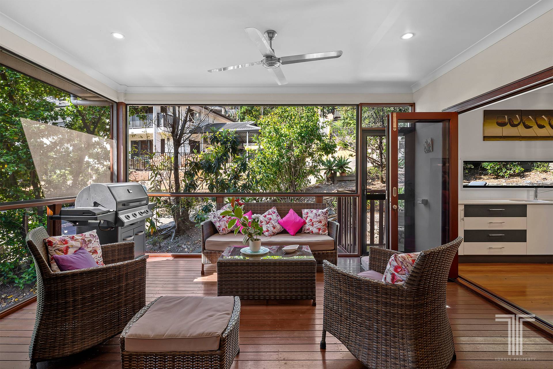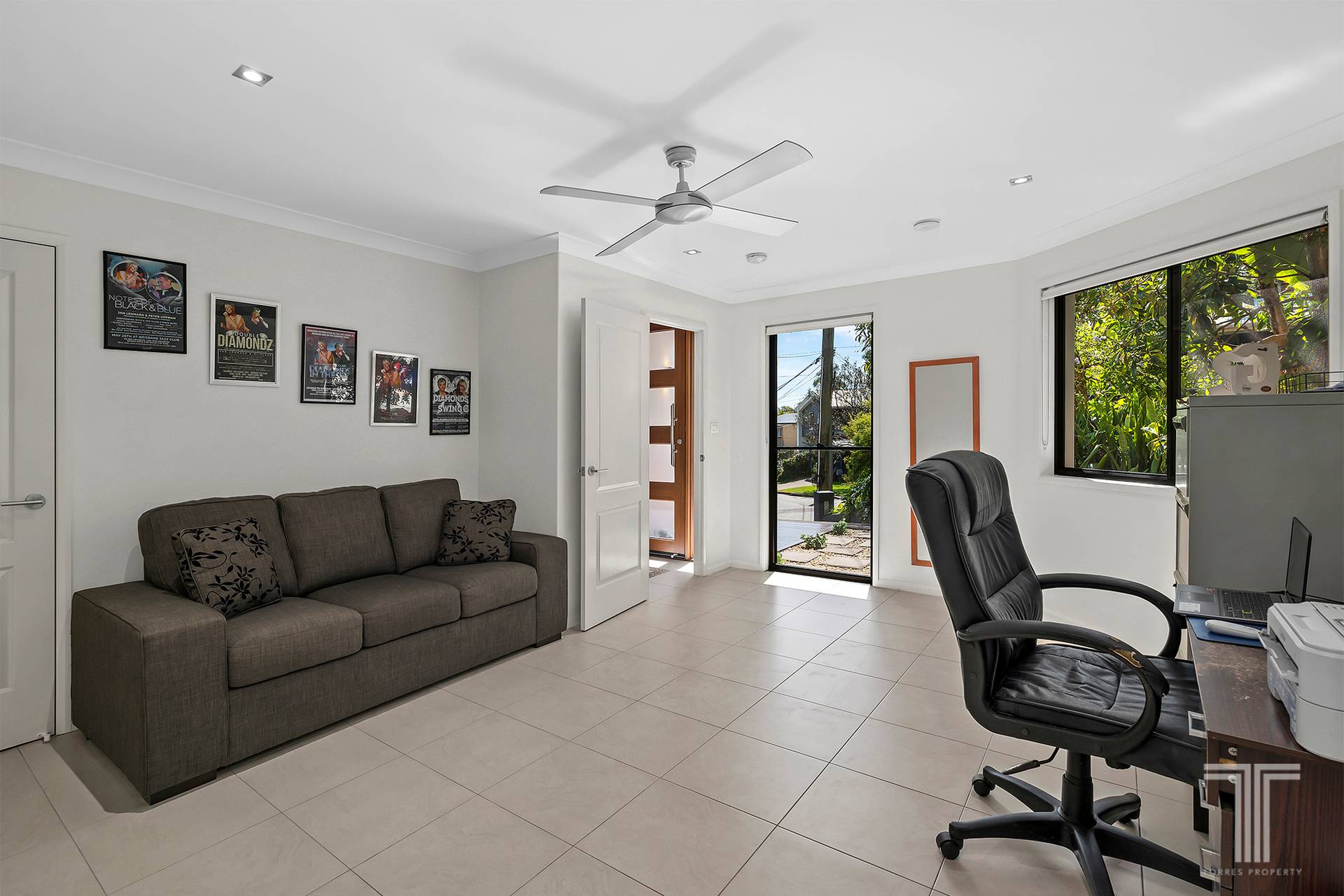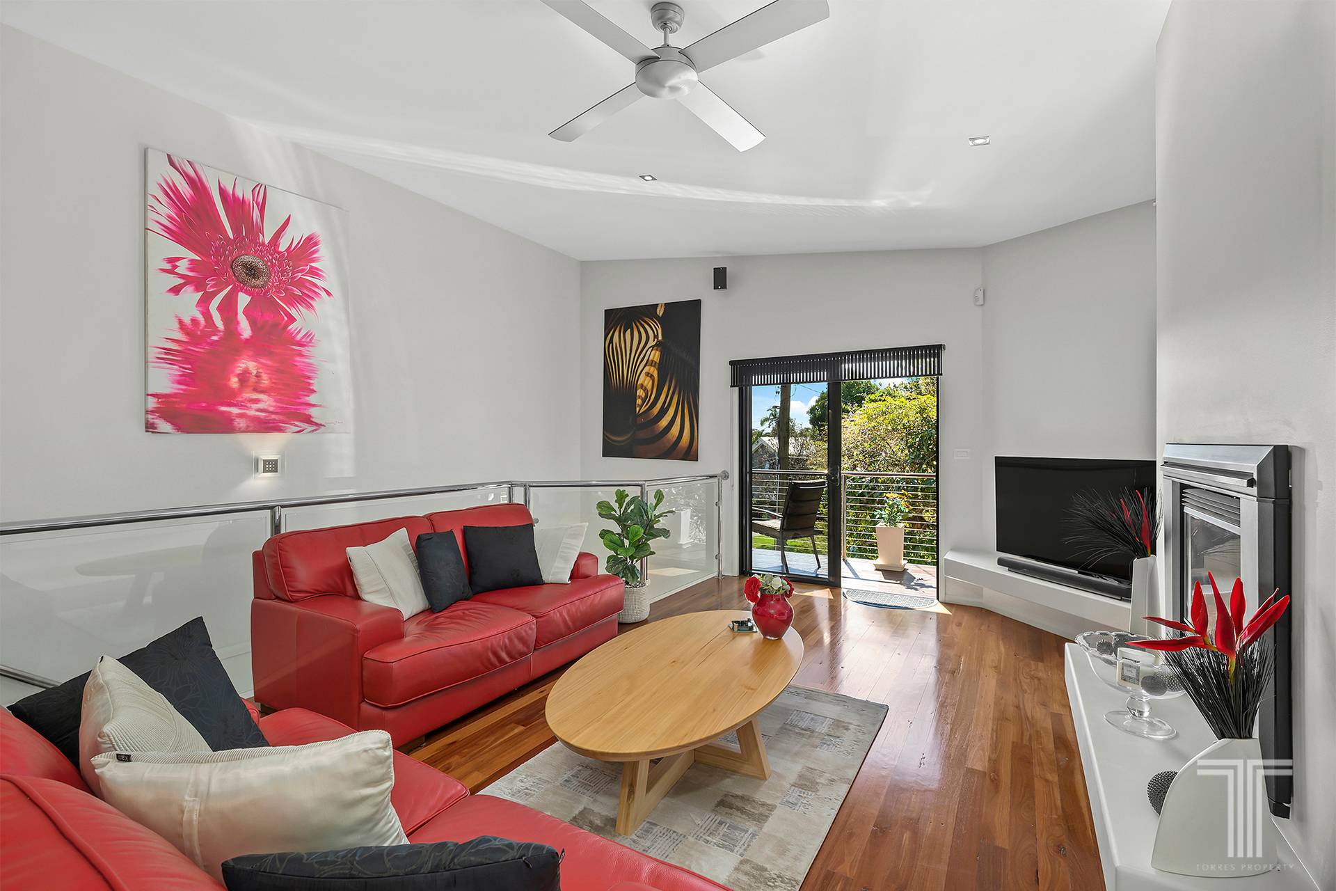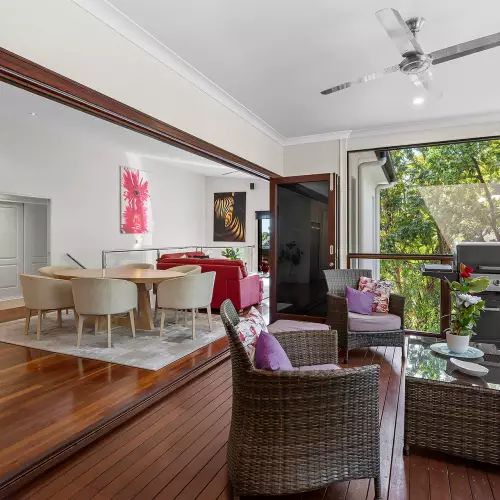 Perched on the side of Mount Gravatt in a whisper-quiet cul-de-sac, this uniquely crafted residence delivers a rare balance of privacy, style, and modern functionality – all on an inner-suburban block. Designed by Stylesetter Homes to maximise space and light, the home is filled with architectural flair, soaring cathedral ceilings, and Sydney Blue Gum hardwood floors that create a sense of warmth and sophistication.