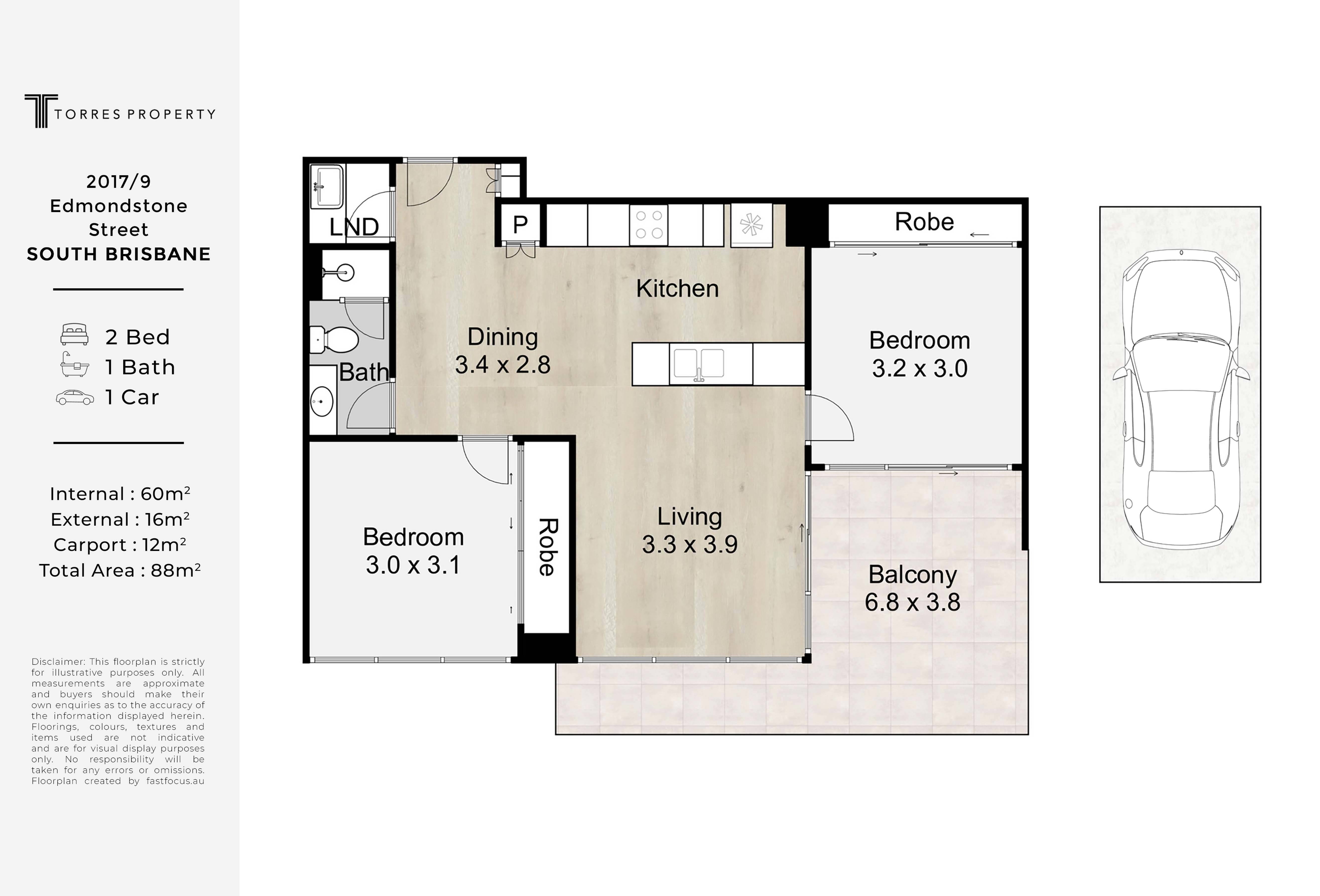 Disclaimer: Whilst every care is taken in the preparation of the information contained in this marketing, Torres Property will not be held liable for any errors in typing or information. All interested parties should rely upon their own enquiries in order to determine whether or not this information is in fact accurate.
