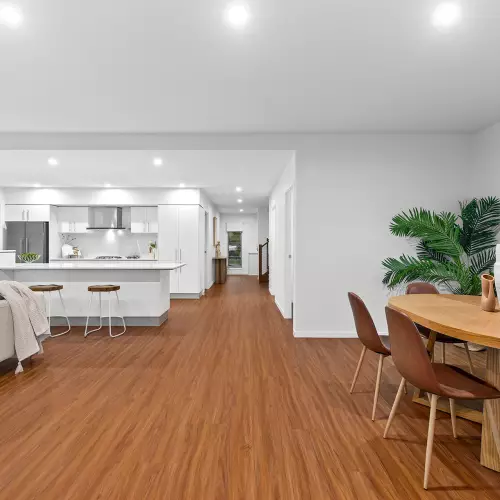 Step inside and be welcomed by fresh new flooring that enhances the sense of style and comfort underfoot. Your eyes are drawn through to the expansive open plan living and dining zones framed by soaring 2.7m ceilings and bathed in natural light, creating an atmosphere of warmth, elegance, and ease. These spaces flow seamlessly together yet still allow for moments of privacy when needed, perfectly balancing connection and retreat with high ceilings, generous proportions, and a warm welcome.