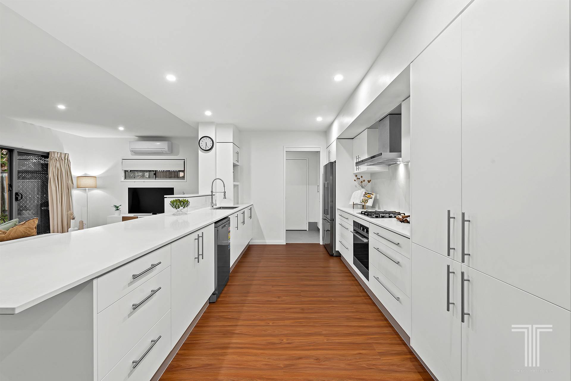 At the heart of the home, adjacent to the dining area, the newly renovated kitchen is a showpiece: premium appliances, thoughtful storage, generous bench space, and a design that allows the cook to stay connected with everyone. It's the kind of kitchen where mornings are easy, dinner prep is a joy, and gatherings linger long into the evening. From here, the casual family room extends outwards, offering comfort, warmth, and a relaxed space for everyday living.