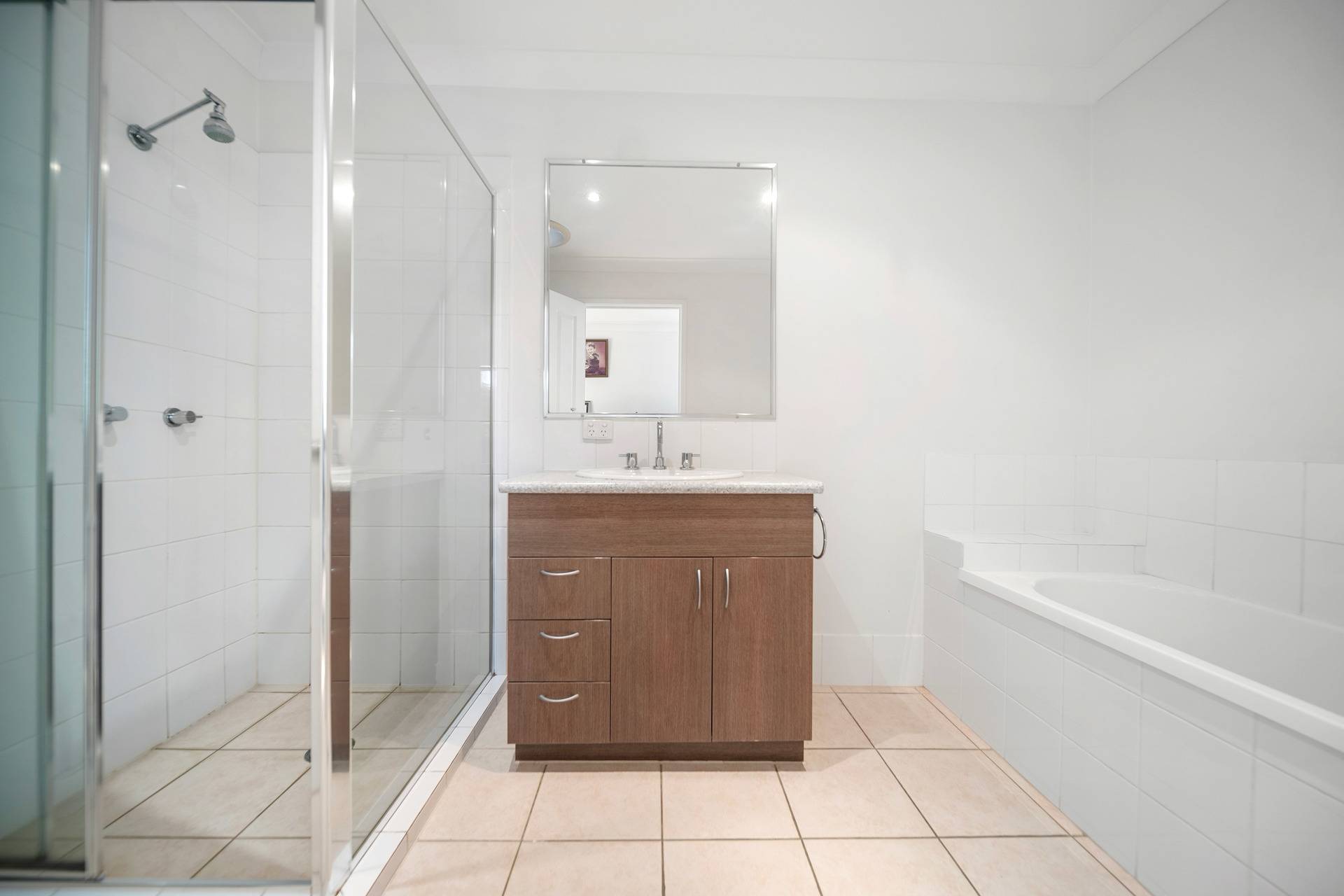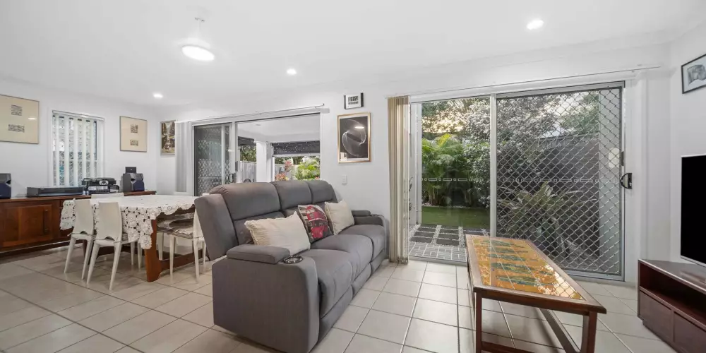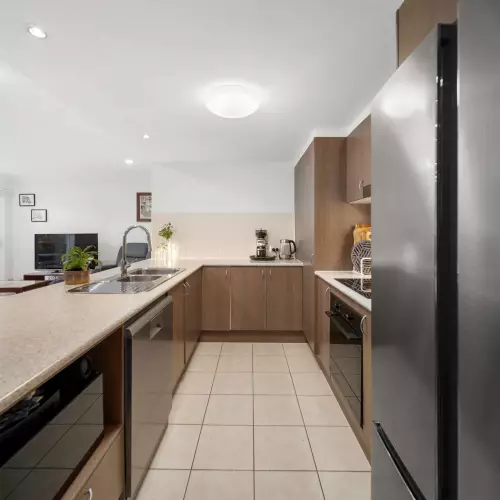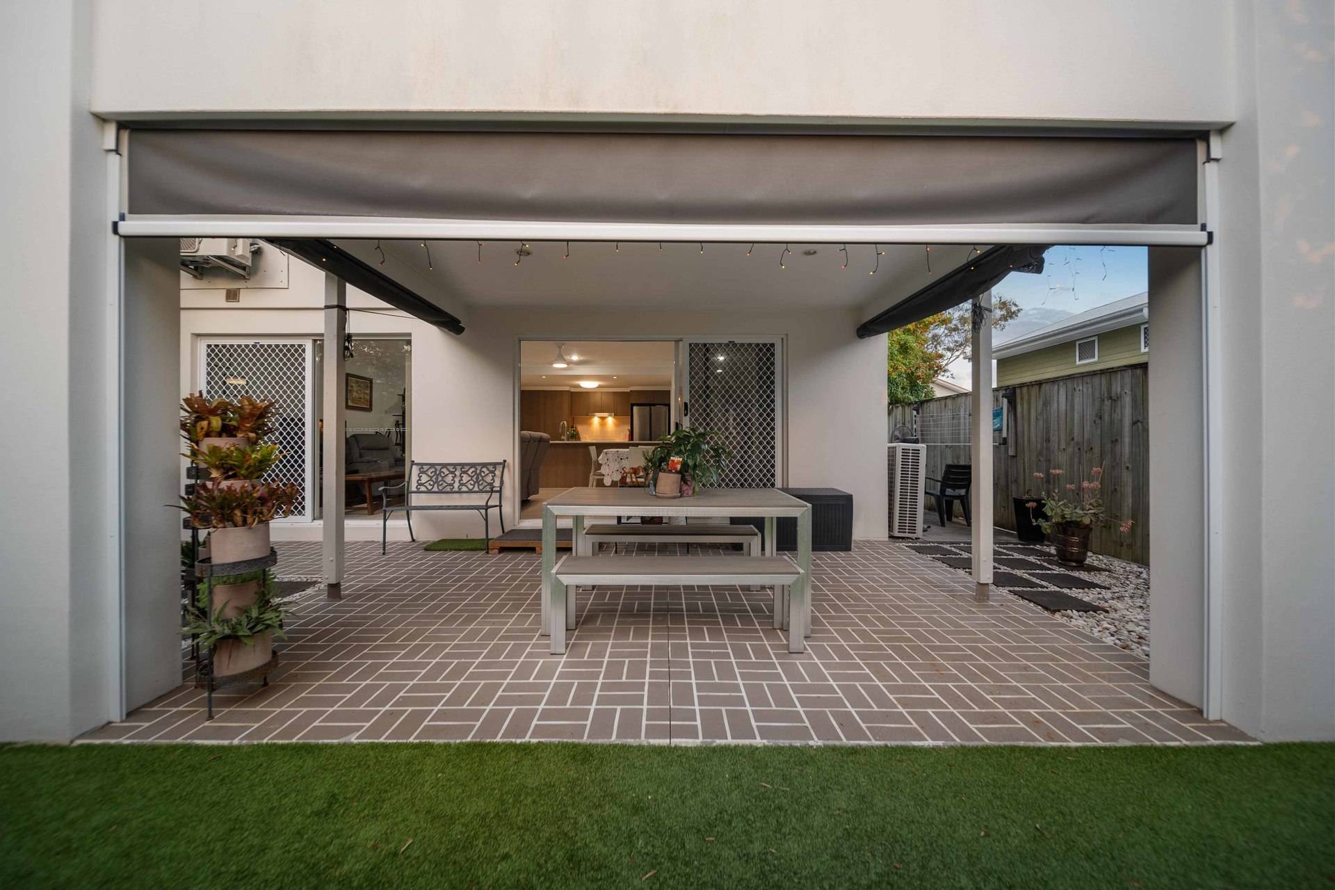 Featuring a two-storey design, the townhouse enters into an open plan living area adorned with easy-care floor tiles and air-conditioning. Adjoining the light-filled kitchen appointed with large benchtops and stainless steel appliances, this relaxed space flows out to an alfresco retreat.