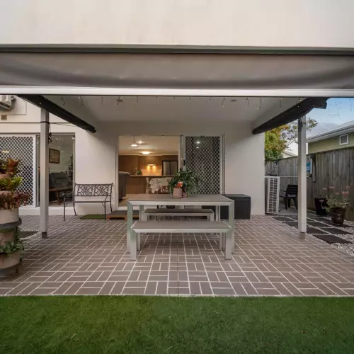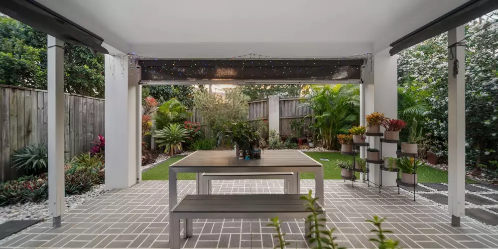 Comprised of an undercover patio for entertaining and roll-down blinds for shade and privacy, this outdoor area overlooks the courtyard boasting beautiful lawns and low maintenance gardens.