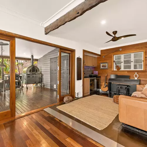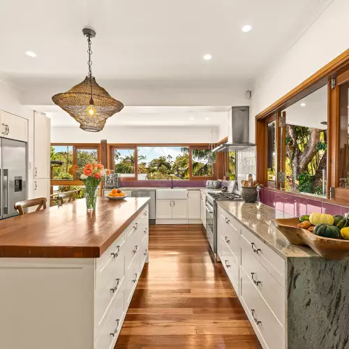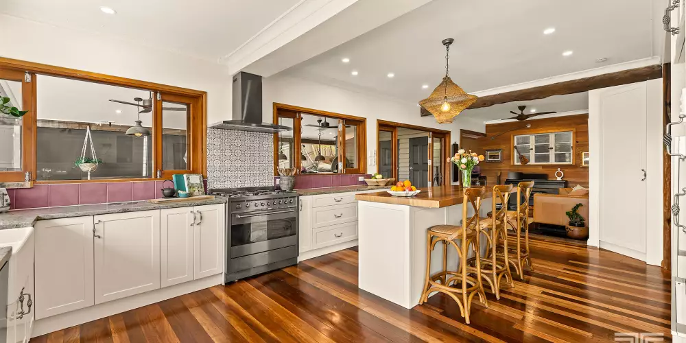 Connected to nature, picture windows capture the lush outlooks and draw sunlight and breezes throughout the home. The calming ambience is enriched by warm timber accents, a fireplace, and air-conditioning, while contemporary finishes ensure every space is move-in ready, with nothing left to do.