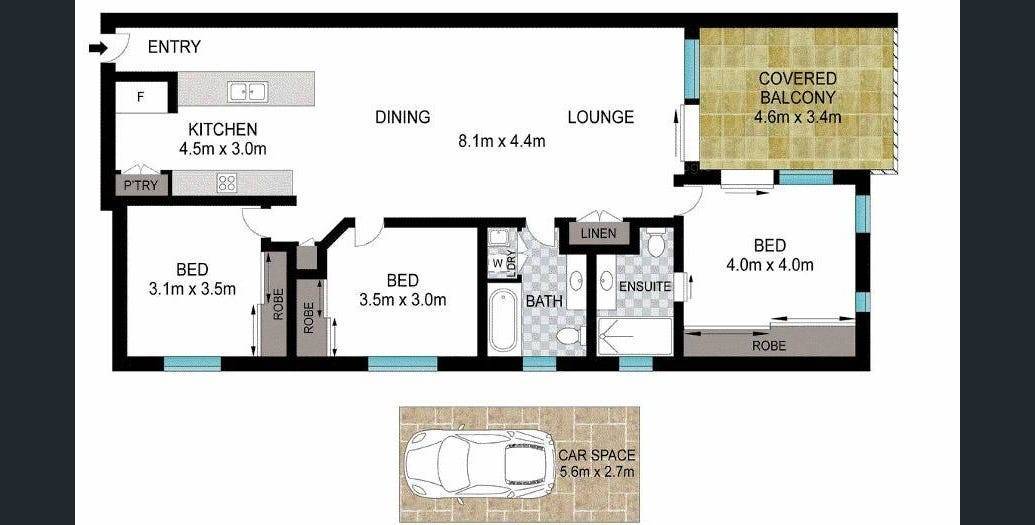 The spacious master bedroom is complemented by a private ensuite and direct access to the balcony, providing a serene retreat. Two additional well-sized bedrooms, each featuring built-in wardrobes, offer plenty of room for family or guests.