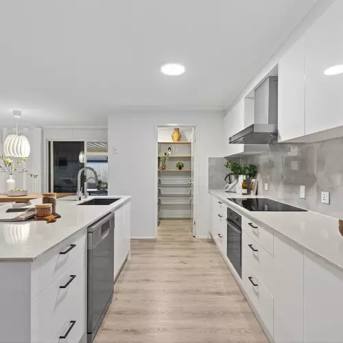 In the heart, a beautifully appointed kitchen showcases quality finishes and functionality. A space you'll look forward to using every day. The living zones open smoothly to the yard, with indoor–outdoor connection delivering light, breezes and relaxed summer entertaining.