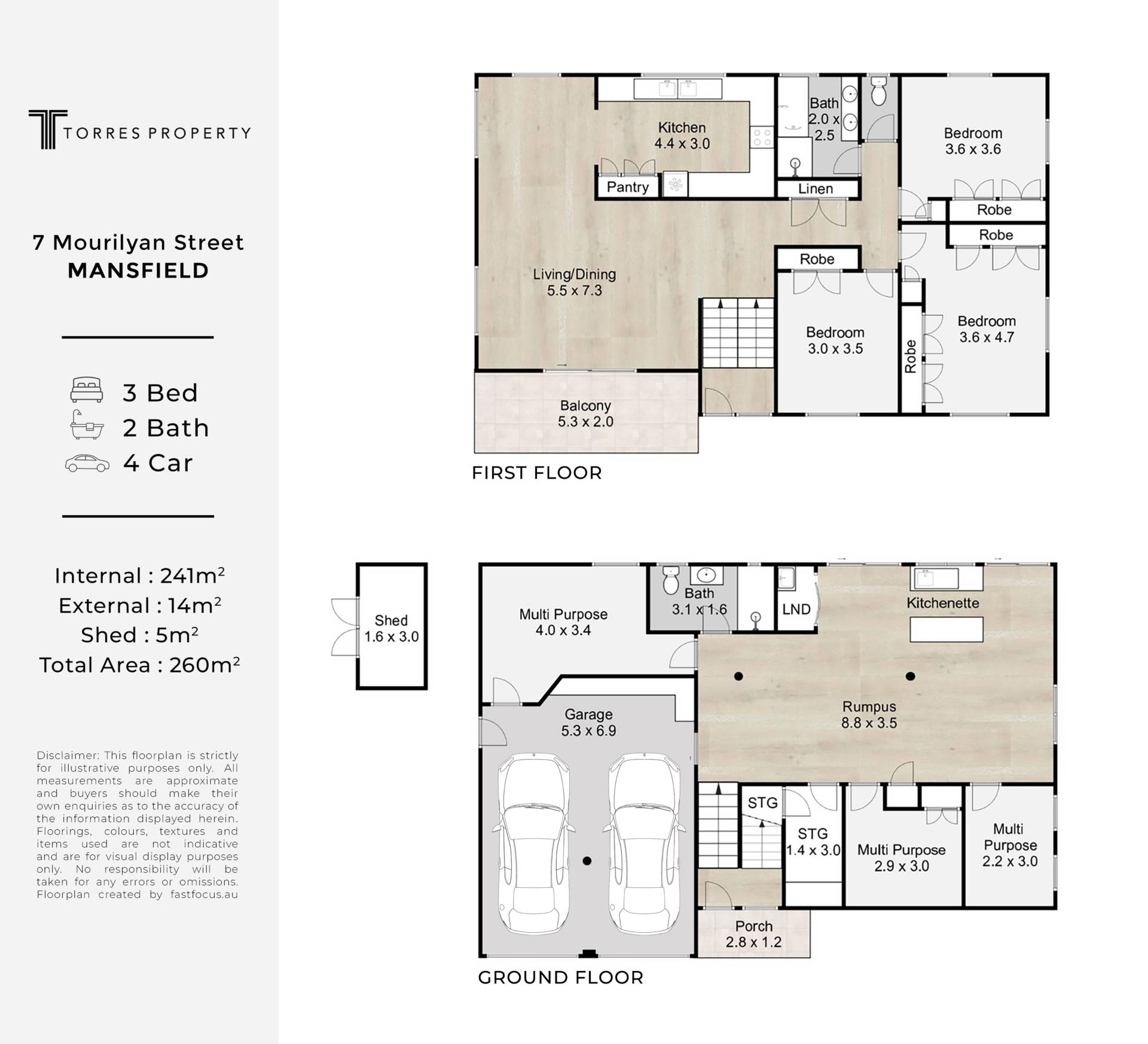 Disclaimer: Whilst every care is taken in the preparation of the information contained in this marketing, Torres Property will not be held liable for any errors in typing or information. All interested parties should rely upon their own enquiries in order to determine whether or not this information is in fact accurate.