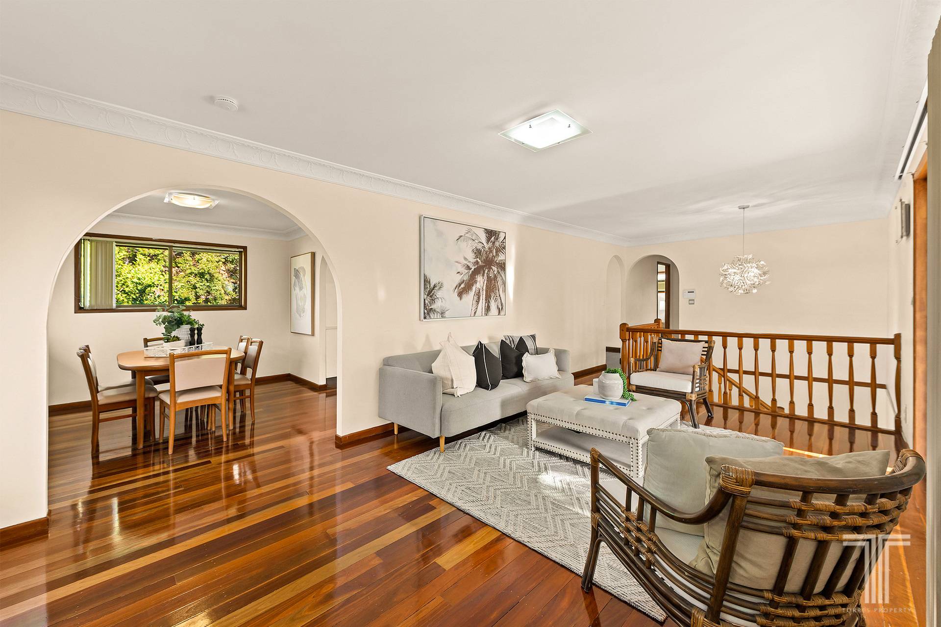 The home offers five generous bedrooms, each featuring built-in wardrobes for ample storage. The master suite includes access to a private balcony, perfect for enjoying your morning coffee or evening breeze, while an additional balcony at the rear provides another peaceful outdoor retreat. Three well-appointed bathrooms, all updated with contemporary finishes, ensuring convenience and comfort for large or growing families.