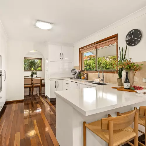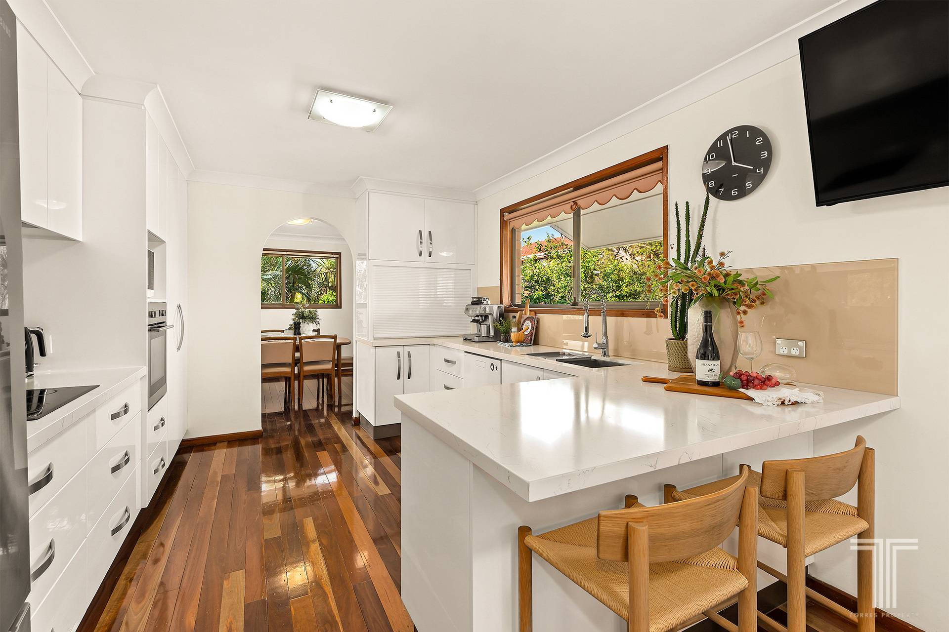 The renovated kitchen sits at the heart of the home, a bright, functional space with ample bench space, quality cabinetry, and modern appliances designed for family living. Nearby, the dining and living zones create a welcoming environment for everyday connection, while the seamless flow to the outdoor areas makes it easy to host guests or relax in the fresh air.