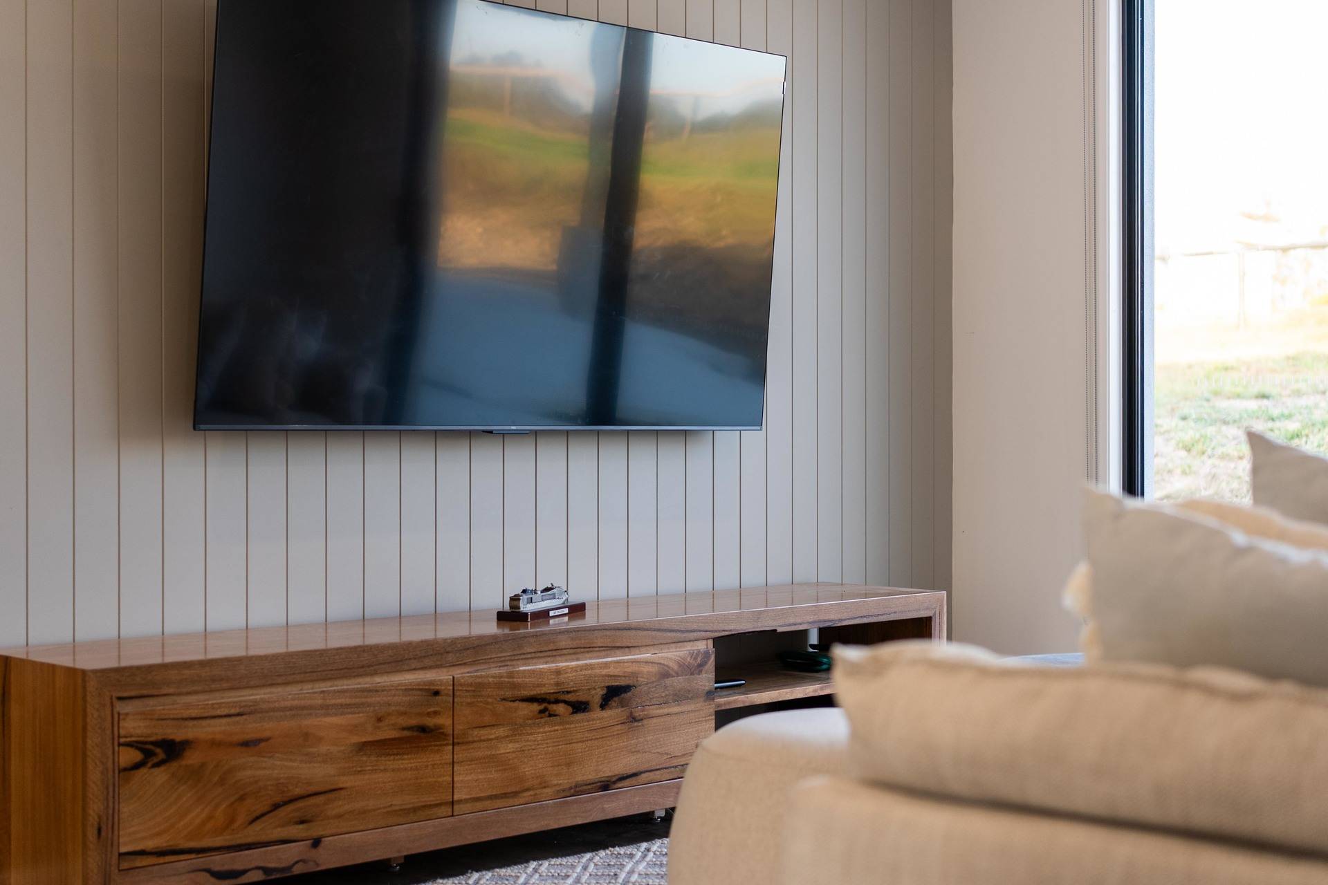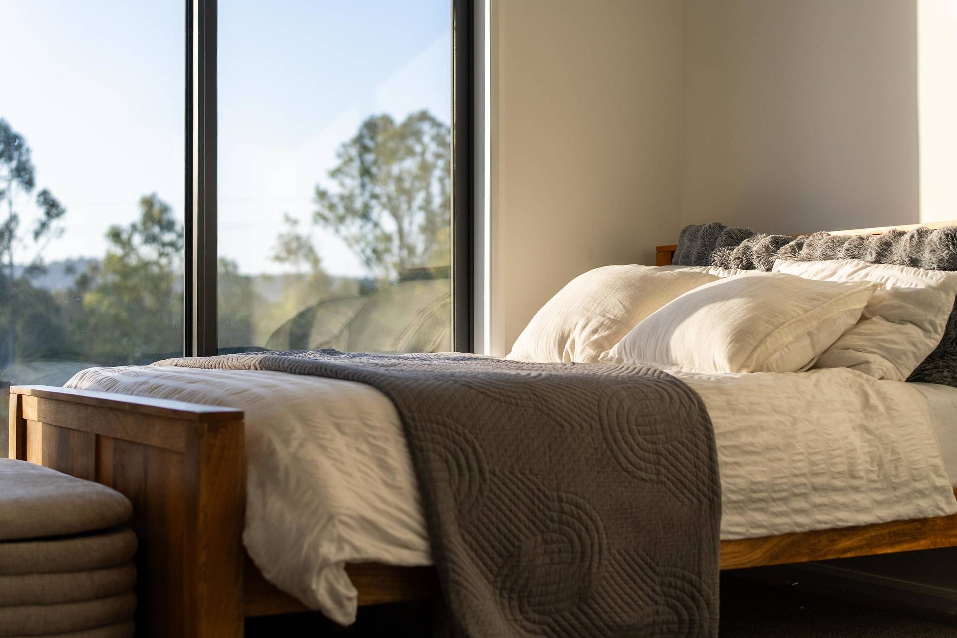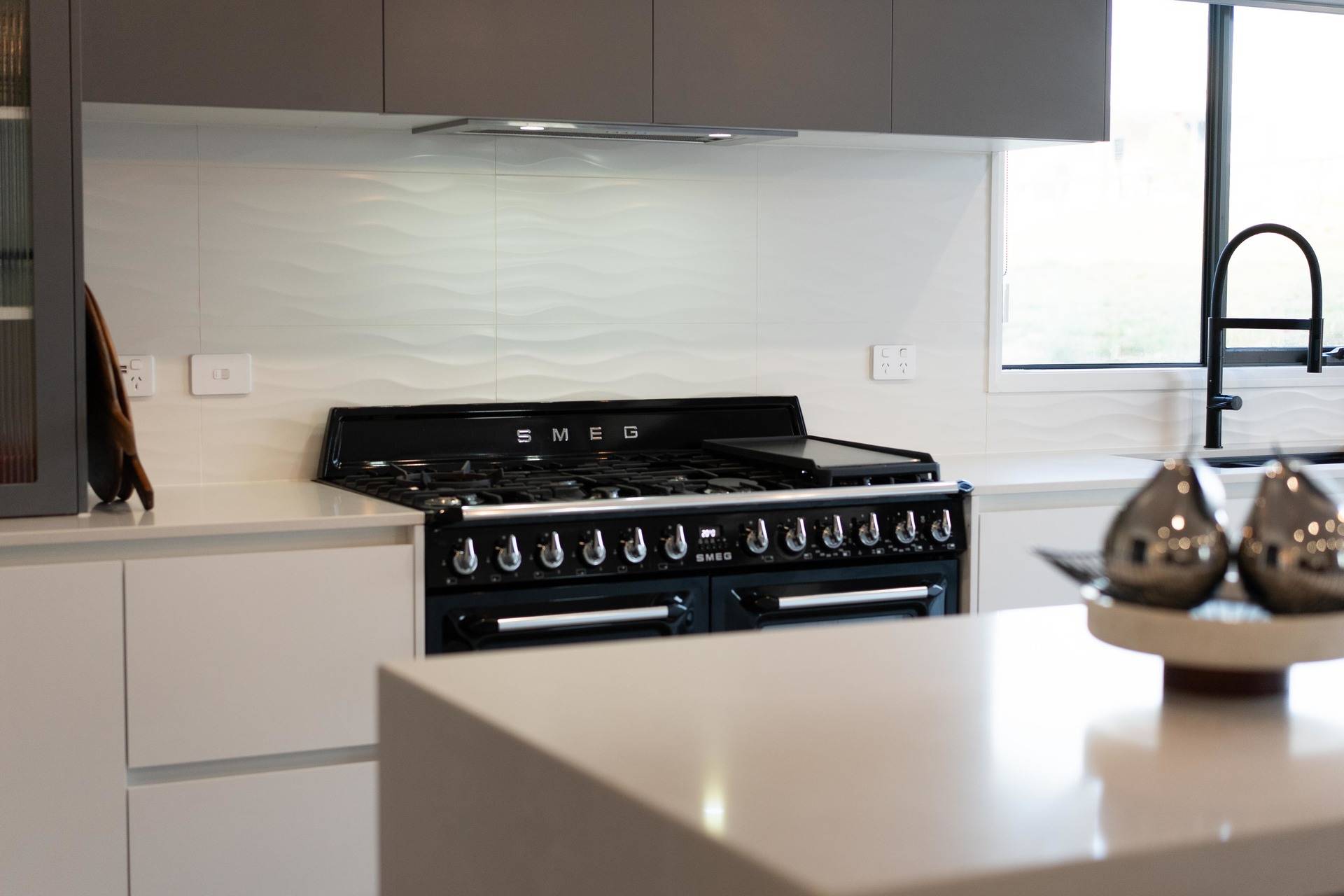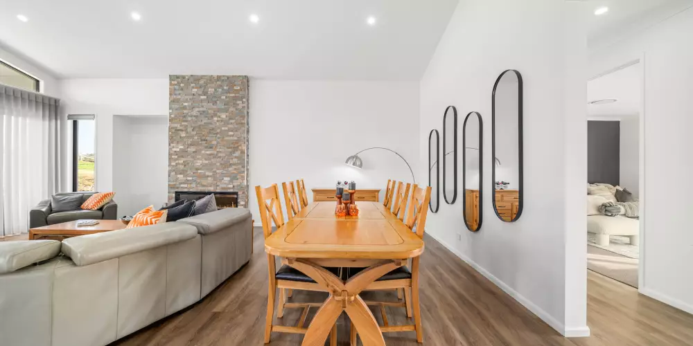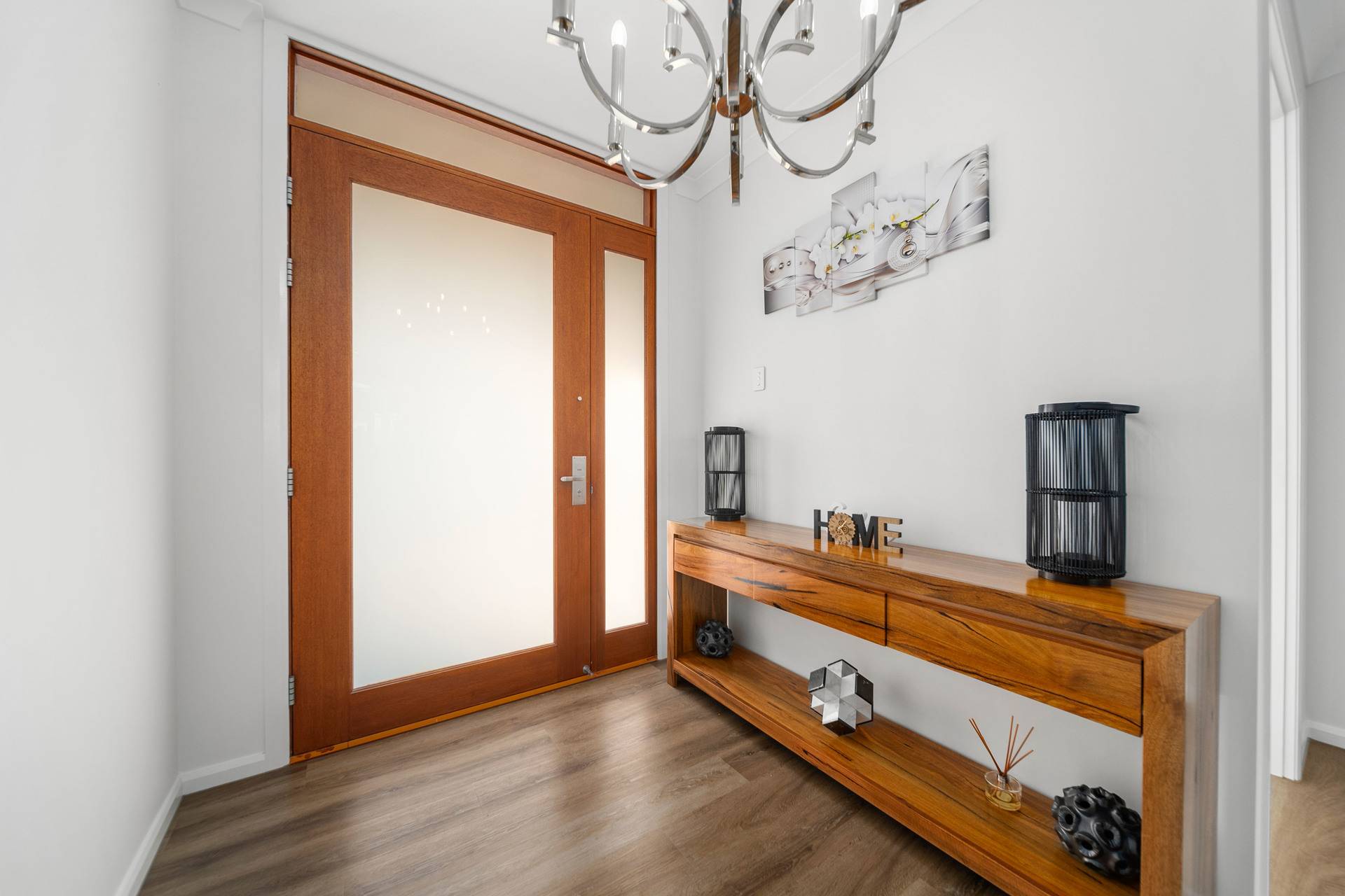 Expertly crafted and elegantly appointed, masonry render, stone and VJ feature walls, spotted gum cladding, and floating hybrid vinyl floors highlight the flowing layout. Perfect for living and entertaining, 2.7m ceilings rise to a soaring 4m cathedral roof in the living/dining area, which is warmed by an electric fireplace and extends to the culinary kitchen, where 60mm Caesarstone encases the granite sink, Smeg appliances and walk-in pantry.