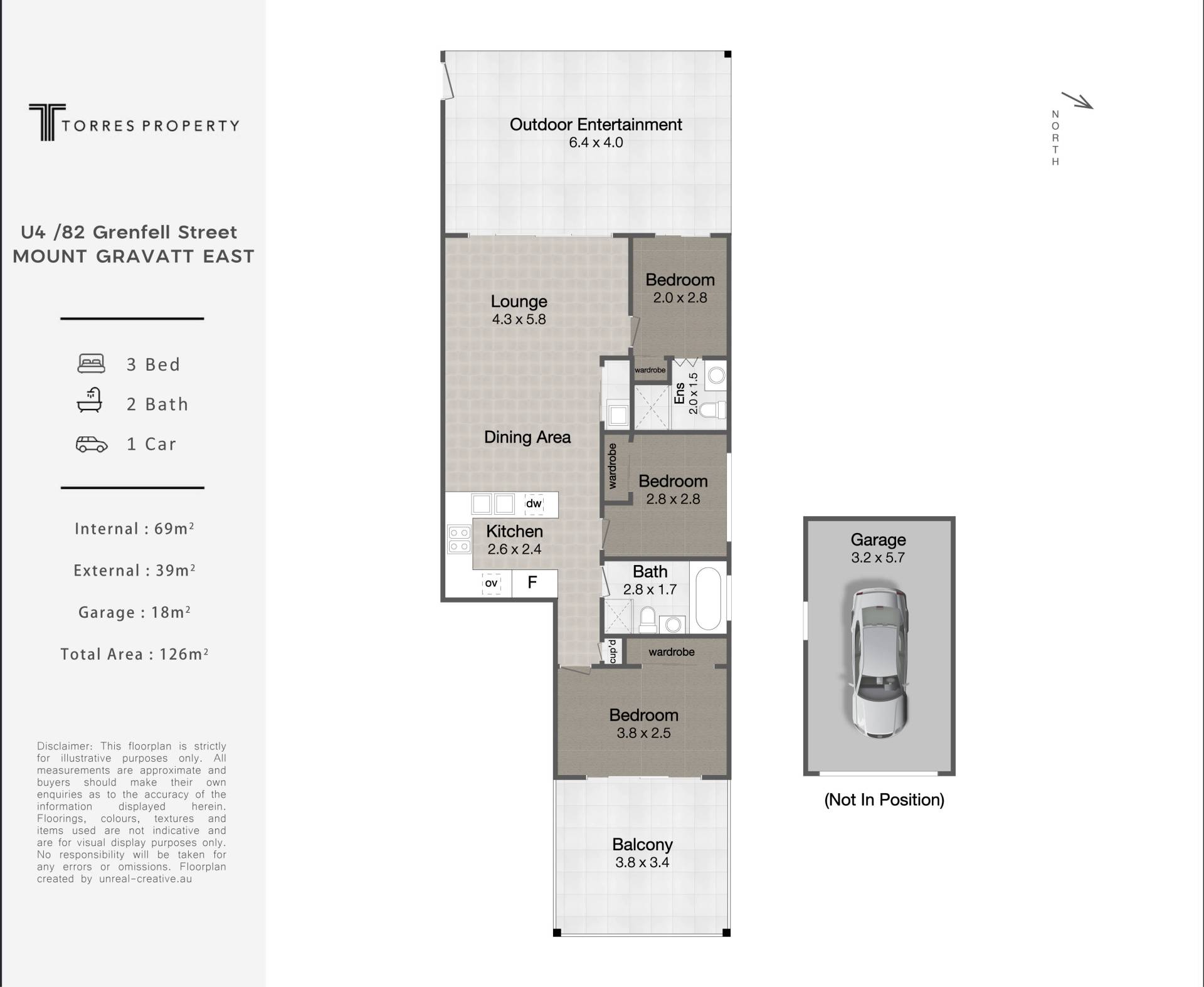 Disclaimer: Whilst every care is taken in the preparation of the information contained in this marketing, Torres Property will not be held liable for any errors in typing or information. All interested parties should rely upon their own enquiries in order to determine whether or not this information is in fact accurate.